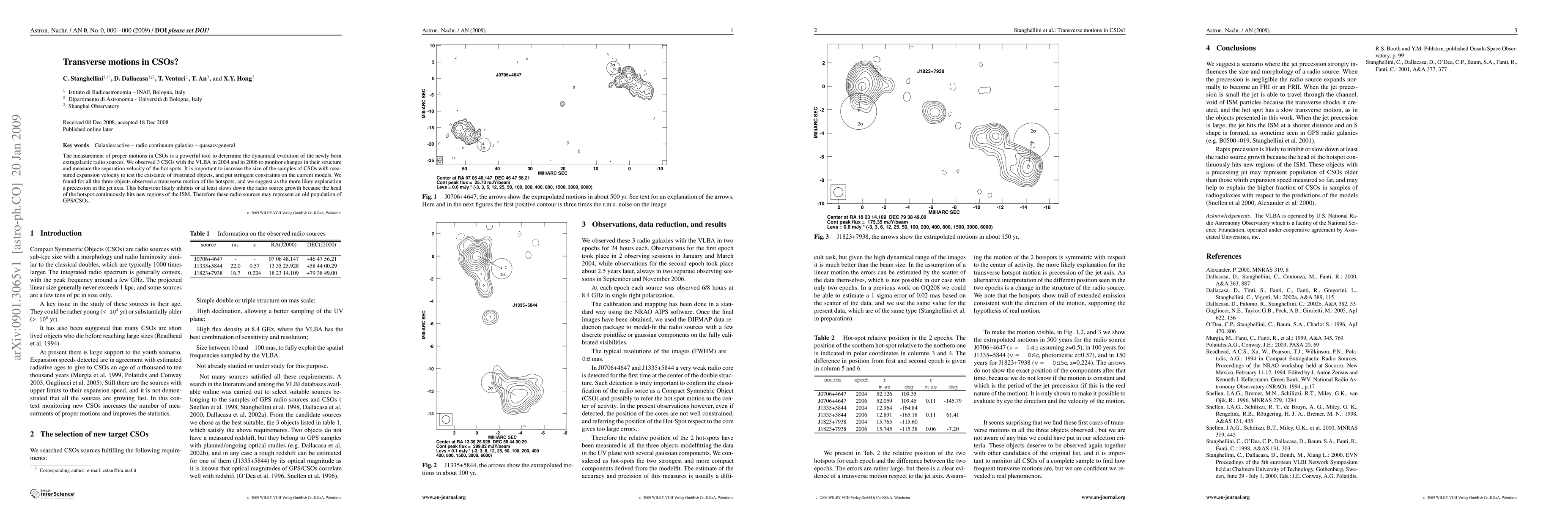 The measurement of proper motions in CSOs is a powerful tool to determine the dynamical evolution of the newly born extragalactic radio sources. We observed 3 CSOs with the VLBA in 2004 and in 2006 to monitor changes in their structure and measure the separation velocity of the hot spots. It is important to increase the size of the samples of CSOs with measured expansion velocity to test the existance of frustrated objects, and put stringent constraints on the current models. We found for all the three objects observed a transverse motion of the hotspots, and we suggest as the more likey explanation a precession in the jet axis. This behaviour likely inhibits or at least slows down the radio source growth because the head of the hotspot continuously hits new regions of the ISM. Therefore these radio sources may represent an old population of GPS/CSOs.