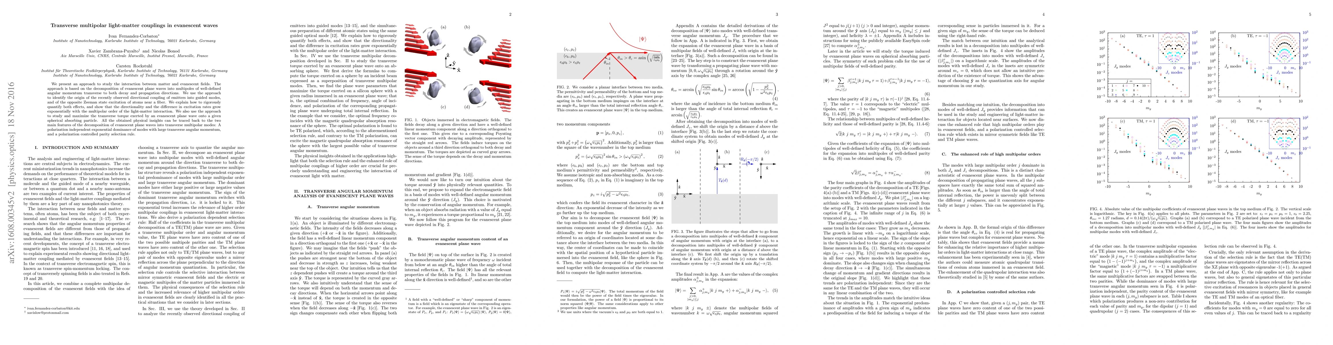 This paper explores the interaction between matter and evanescent fields by decomposing evanescent plane waves into transverse multipolar modes, revealing the exponential growth of directional coupling and Zeeman state excitation with multipolar order. The study also identifies the optimal conditions for maximizing transverse torque on spherical particles.