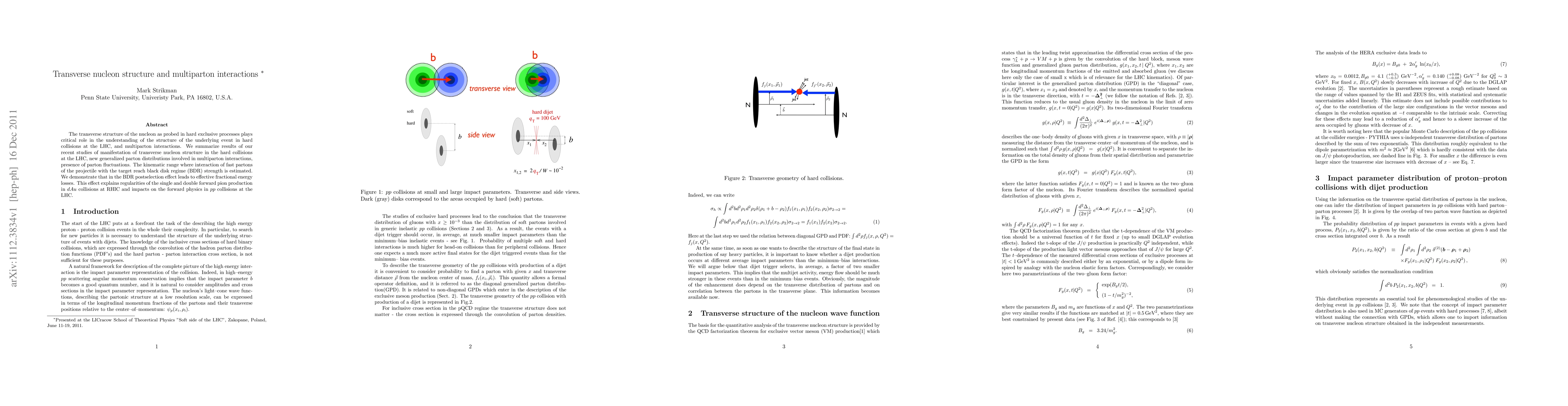 This paper explores the transverse structure of nucleons in hard exclusive processes and its implications for multiparton interactions in LHC collisions. It highlights the black disk regime's role in fractional energy losses, explaining phenomena like single and double forward pion production in $dAu$ collisions and the forward physics in $pp$ collisions.
