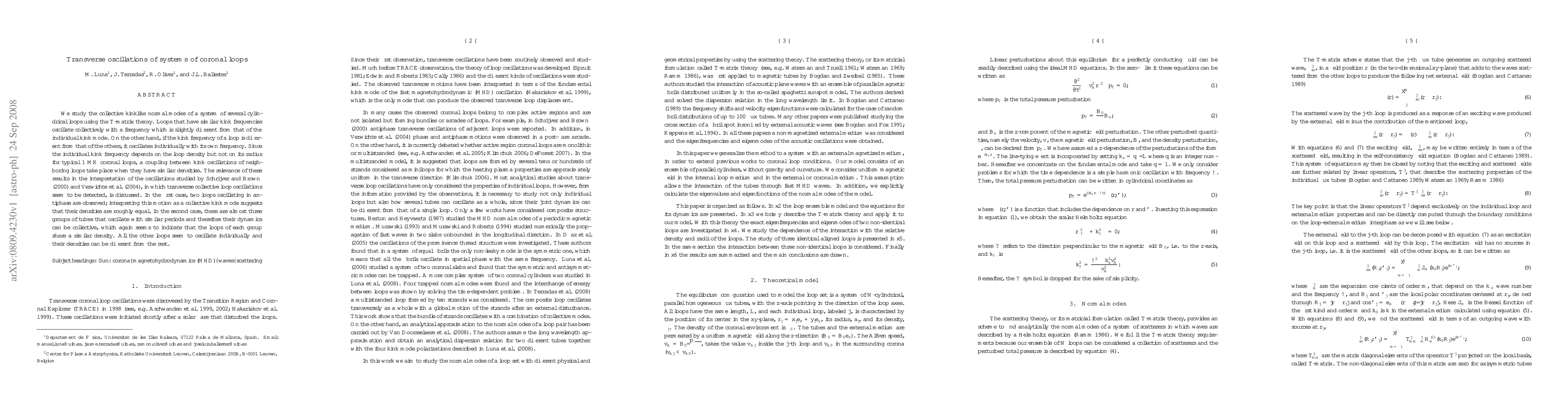 This paper investigates the collective transverse oscillations of coronal loops using T-matrix theory, finding that loops with similar densities oscillate collectively, while those with different densities oscillate individually. The study's implications are discussed in relation to observed transverse loop oscillations, suggesting that loops with similar densities exhibit collective behavior.