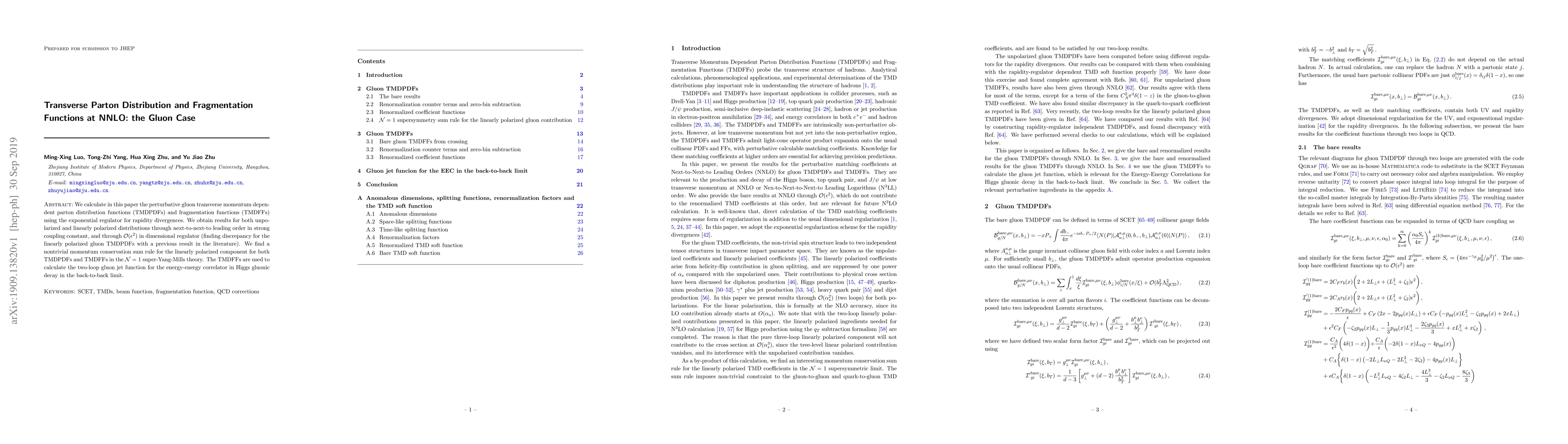 This paper calculates gluon transverse momentum dependent parton distribution and fragmentation functions at next-to-next-to leading order, revealing discrepancies in linearly polarized gluon TMDPDFs compared to previous results. It also establishes a nontrivial momentum conservation sum rule for the linearly polarized component in ${\cal N}=1$ super-Yang-Mills theory.