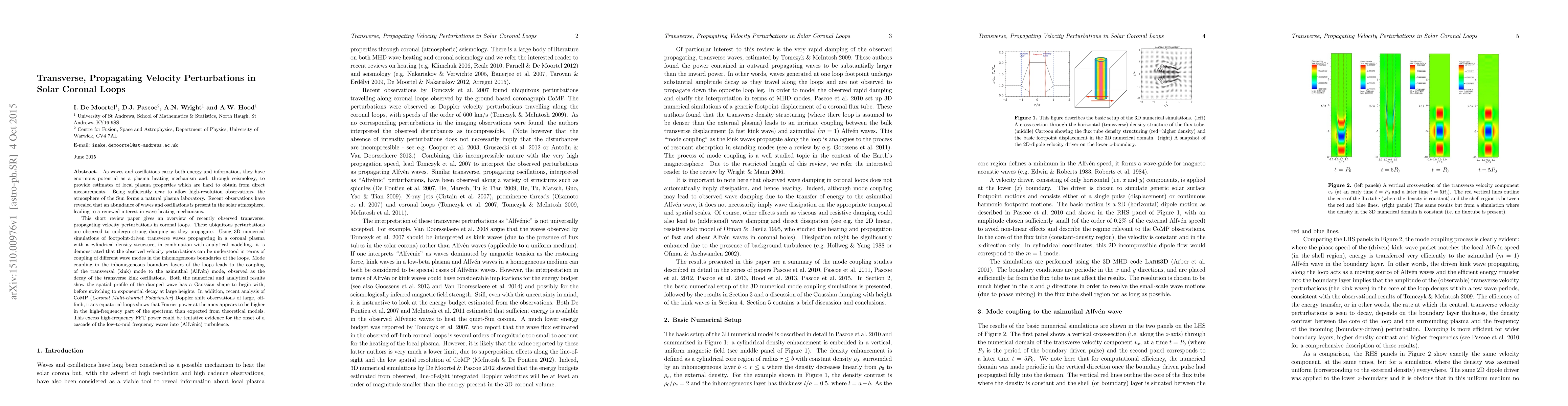 This short review paper gives an overview of recently observed transverse, propagating velocity perturbations in coronal loops. These ubiquitous perturbations are observed to undergo strong damping as they propagate. Using 3D numerical simulations of footpoint-driven transverse waves propagating in a coronal plasma with a cylindrical density structure, in combination with analytical modelling, it is demonstrated that the observed velocity perturbations can be understood in terms of coupling of different wave modes in the inhomogeneous boundaries of the loops. Mode coupling in the inhomogeneous boundary layers of the loops leads to the coupling of the transversal (kink) mode to the azimuthal (Alfven) mode, observed as the decay of the transverse kink oscillations. Both the numerical and analytical results show the spatial profile of the damped wave has a Gaussian shape to begin with, before switching to exponential decay at large heights. In addition, recent analysis of CoMP (Coronal Multi-channel Polarimeter) Doppler shift observations of large, off- limb, trans-equatorial loops shows that Fourier power at the apex appears to be higher in the high-frequency part of the spectrum than expected from theoretical models. This excess high-frequency FFT power could be tentative evidence for the onset of a cascade of the low-to-mid frequency waves into (Alfvenic) turbulence.