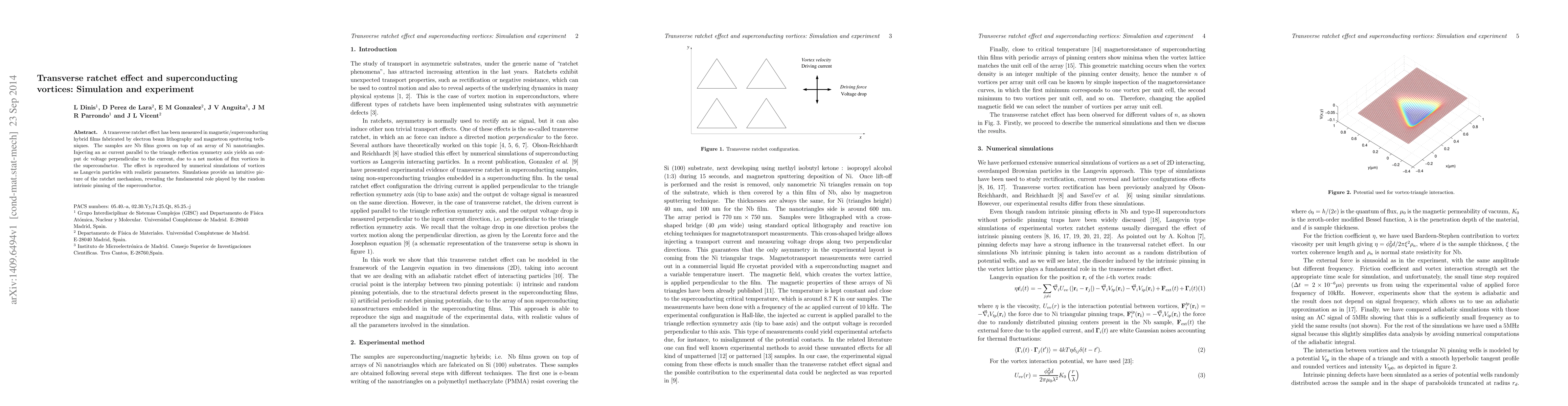 This paper reports the measurement of a transverse ratchet effect in Nb superconducting films on Ni nanotriangle arrays, where an ac current induces a dc voltage due to vortex motion. Numerical simulations of vortices as Langevin particles corroborate the experimental findings and highlight the importance of intrinsic pinning in the ratchet mechanism.