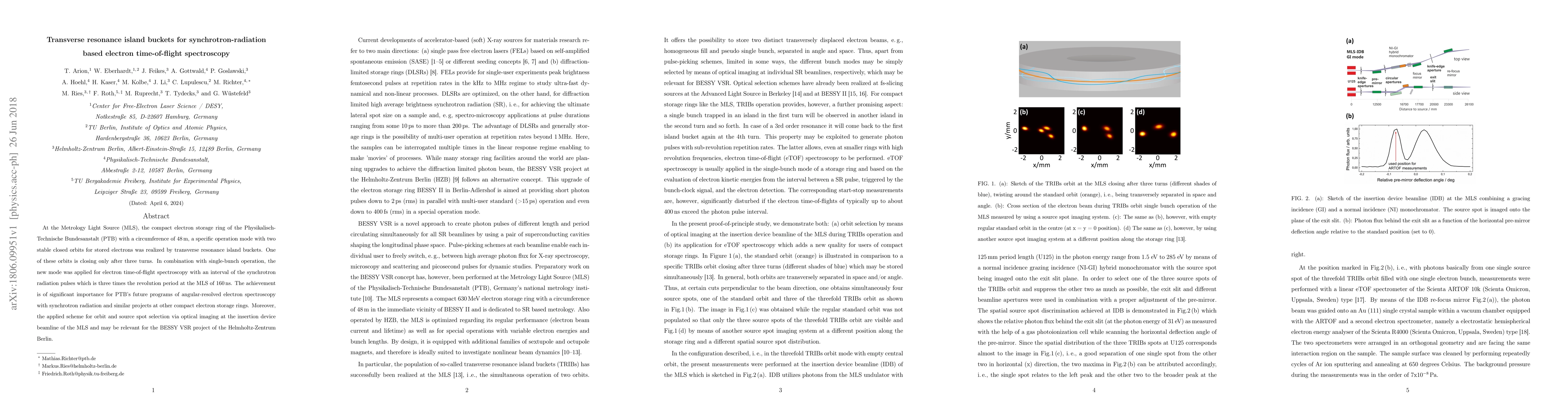 This research introduces a novel operation mode at the Metrology Light Source using transverse resonance island buckets to create two stable closed orbits for electron storage, enabling precise electron time-of-flight spectroscopy with synchrotron radiation. This method is crucial for future angular-resolved electron spectroscopy projects and may benefit similar initiatives at other compact electron storage rings.