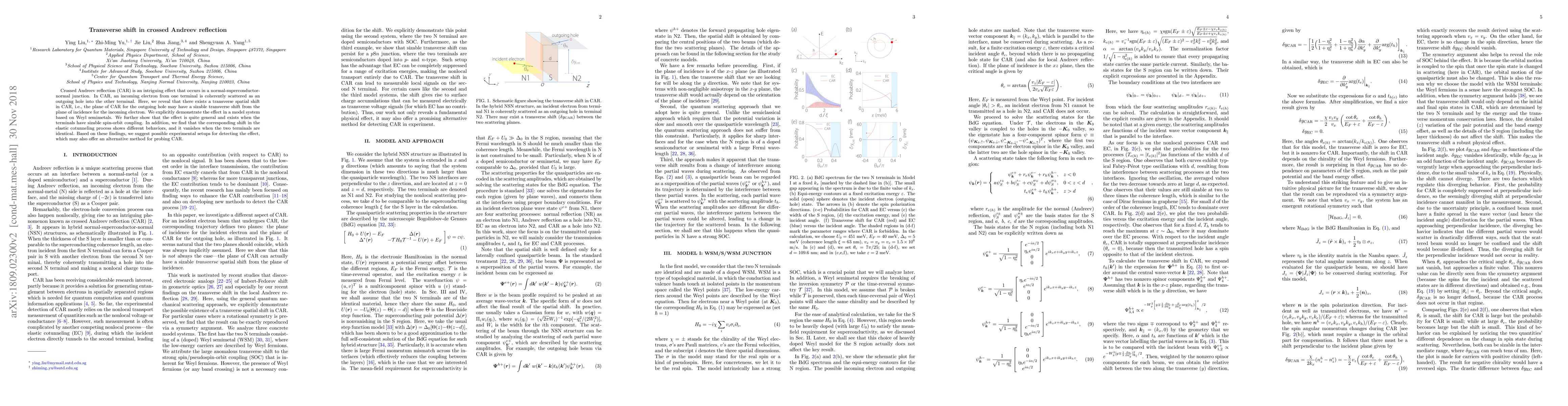 Summary: This paper reveals a transverse spatial shift in crossed Andreev reflection (CAR) occurring in normal-superconductor-normal junctions, particularly evident in systems with Weyl semimetals and significant spin-orbit coupling. The effect is suggested to be detectable in specific experimental setups, offering an alternative method for probing CAR.
