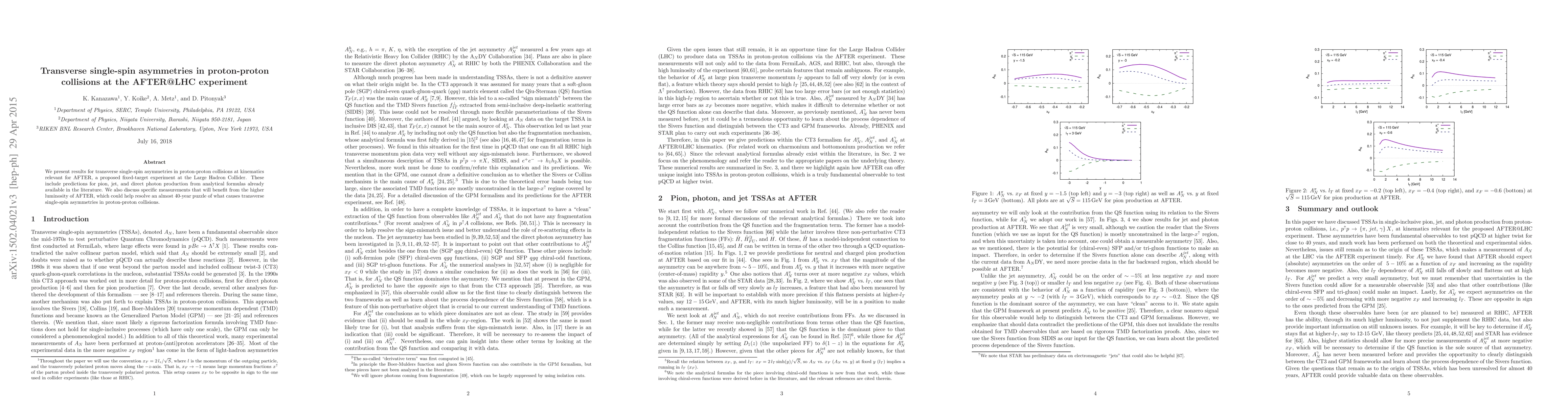 This paper reports on transverse single-spin asymmetries in proton-proton collisions relevant to the AFTER@LHC experiment, predicting pion, jet, and direct photon production. It aims to resolve a longstanding puzzle regarding the causes of these asymmetries with the anticipated higher luminosity of the AFTER experiment.