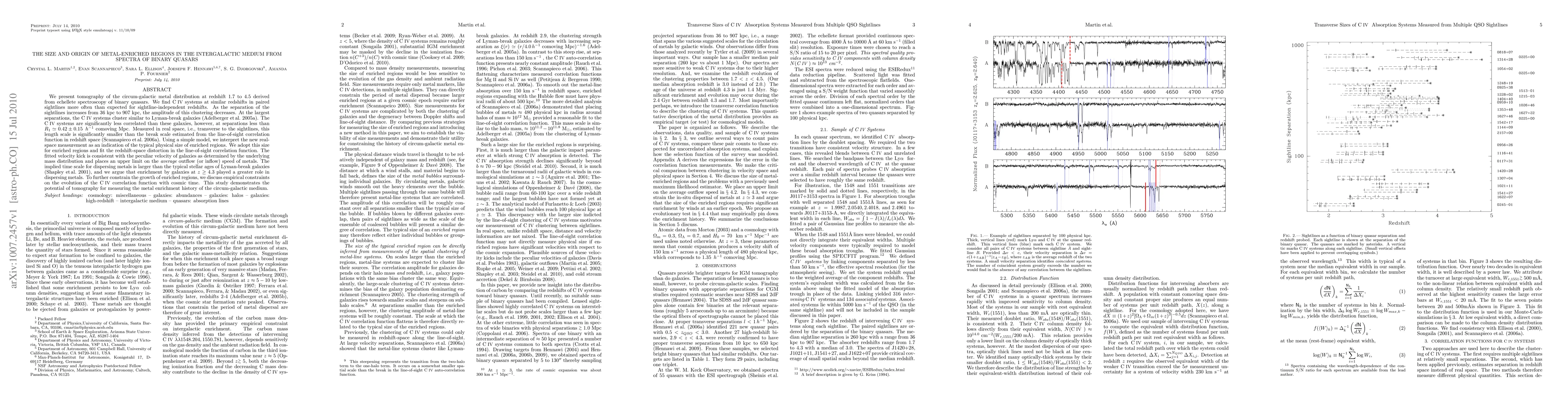 We present tomography of the circum-galactic metal distribution at redshift 1.7 to 4.5 derived from echellete spectroscopy of binary quasars. We find CIV systems at similar redshifts in paired sightlines more often than expected for sightline-independent redshifts. As the separation of the sightlines increases from 36 kpc to 907 kpc, the amplitude of this clustering decreases. At the largest separations, the CIV systems cluster similar to Lyman-break galaxies (Adelberger et al. 2005a). The CIV systems are significantly less correlated than these galaxies, however, at separations less than R_1 ~ 0.42 +/- 0.15 h-1 comoving Mpc. Measured in real space, i.e., transverse to the sightlines, this length scale is significantly smaller than the break scale estimated from the line-of-sight correlation function in redshift space (Scannapieco et al. 2006a). Using a simple model, we interpret the new real-space measurement as an indication of the typical physical size of enriched regions. We adopt this size for enriched regions and fit the redshift-space distortion in the line-of-sight correlation function. The fitted velocity kick is consistent with the peculiar velocity of galaxies as determined by the underlying mass distribution and places an upper limit on the outflow (or inflow) speed of metals. The implied time scale for dispersing metals is larger than the typical stellar ages of Lyman-break galaxies (Shapley et al. 2001), and we argue that enrichment by galaxies at z > 4.3 played a greater role in dispersing metals. To further constrain the growth of enriched regions, we discuss empirical constraints on the evolution of the CIV correlation function with cosmic time. This study demonstrates the potential of tomography for measuring the metal enrichment history of the circum-galactic medium.