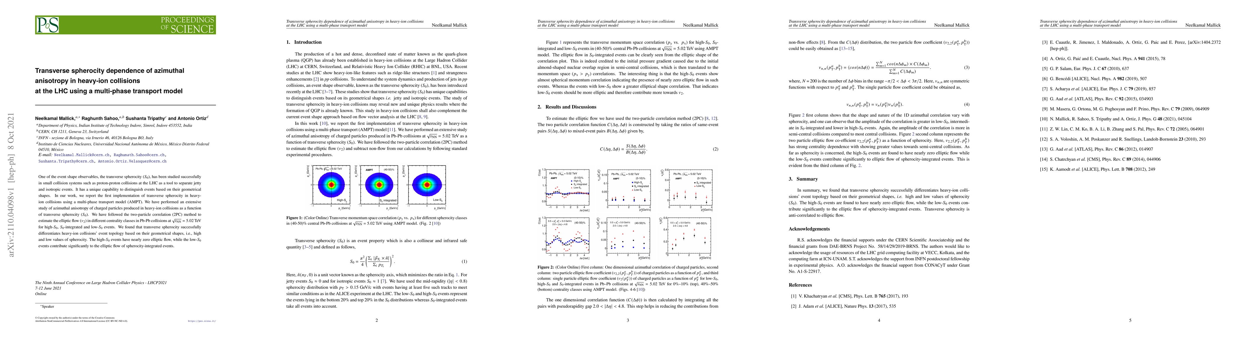 This paper investigates the transverse spherocity ($S_0$) in heavy-ion collisions at the LHC using a multi-phase transport model, finding that it effectively distinguishes event topologies based on geometrical shapes. High-$S_0$ events show nearly zero elliptic flow, while low-$S_0$ events significantly contribute to the overall elliptic flow.