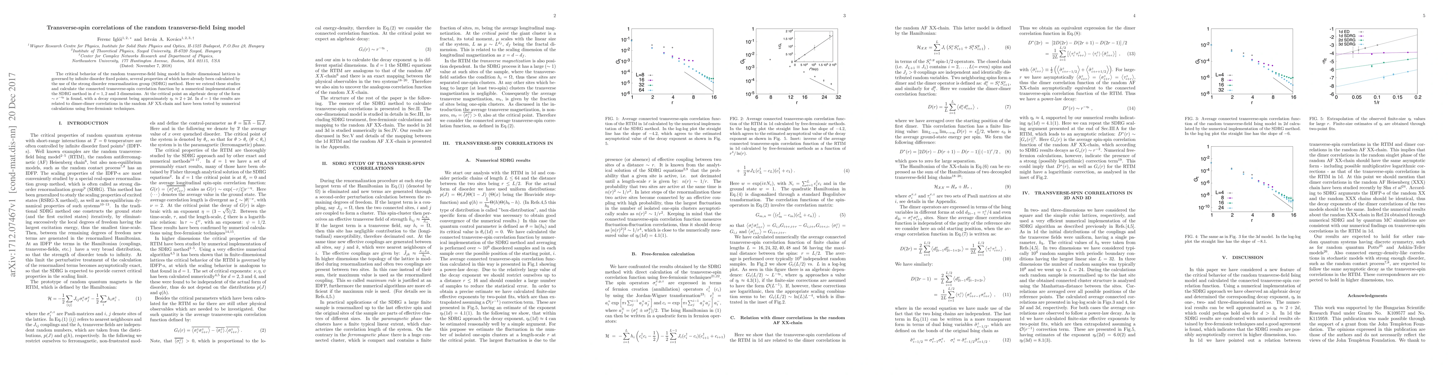 This paper investigates the critical behavior of the random transverse-field Ising model using the strong disorder renormalization group (SDRG) method, finding an algebraic decay of the connected transverse-spin correlation function with a decay exponent $\eta_t \approx 2+2d$ in dimensions $d=1,2,3$. Results for $d=1$ are compared with numerical calculations on the random AF XX-chain.