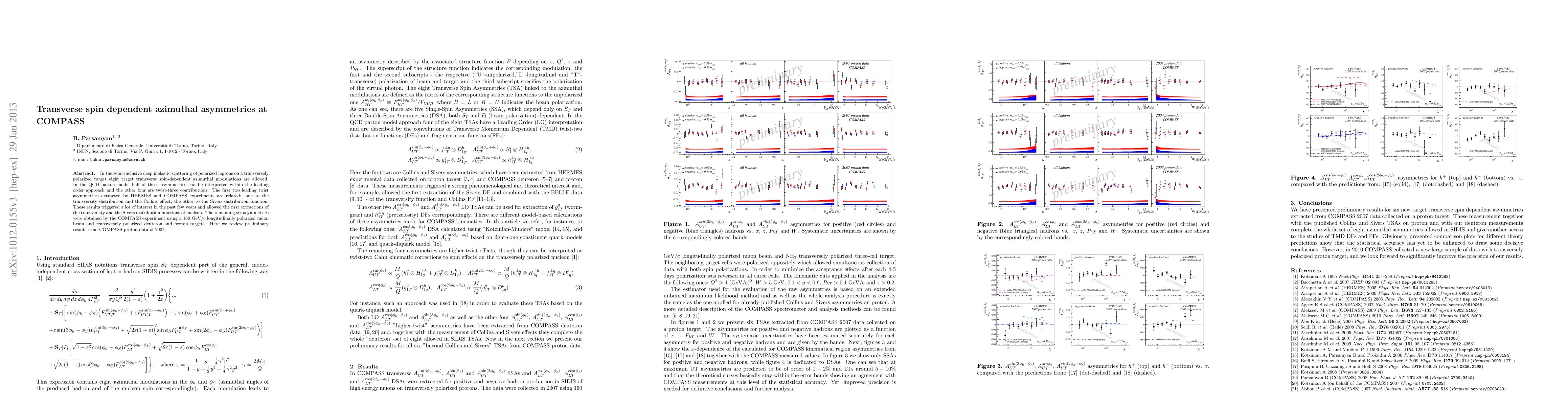 In semi-inclusive deep inelastic scattering of polarized leptons on a transversely polarized target eight target transverse spin-dependent azimuthal modulations are allowed. In the QCD parton model half of these asymmetries can be interpreted within the leading order approach and the other four are twist-three contributions. The first two leading twist asymmetries extracted by HERMES and COMPASS experiments are related: one to the transversity distribution and the Collins effect, the other to the Sivers distribution function. These results triggered a lot of interest in the past few years and allowed the first extractions of the transversity and the Sivers distribution functions of nucleon. The remaining six asymmetries were obtained by the COMPASS experiment using a 160 GeV/c longitudinally polarized muon beam and transversely polarized deuteron and proton targets. Here we review preliminary results from COMPASS proton data of 2007.