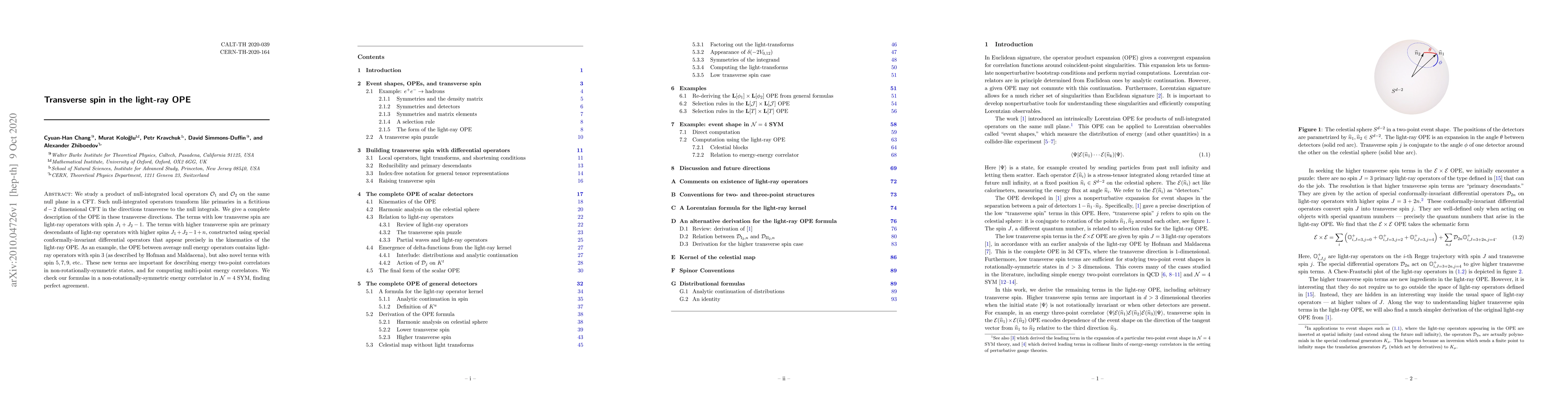 This paper provides a comprehensive description of the operator product expansion (OPE) for null-integrated local operators in conformal field theory (CFT), focusing on transverse spin. It identifies light-ray operators with novel higher spin terms, crucial for correlators in non-rotationally-symmetric states, and verifies these findings in $\mathcal{N}=4$ SYM.