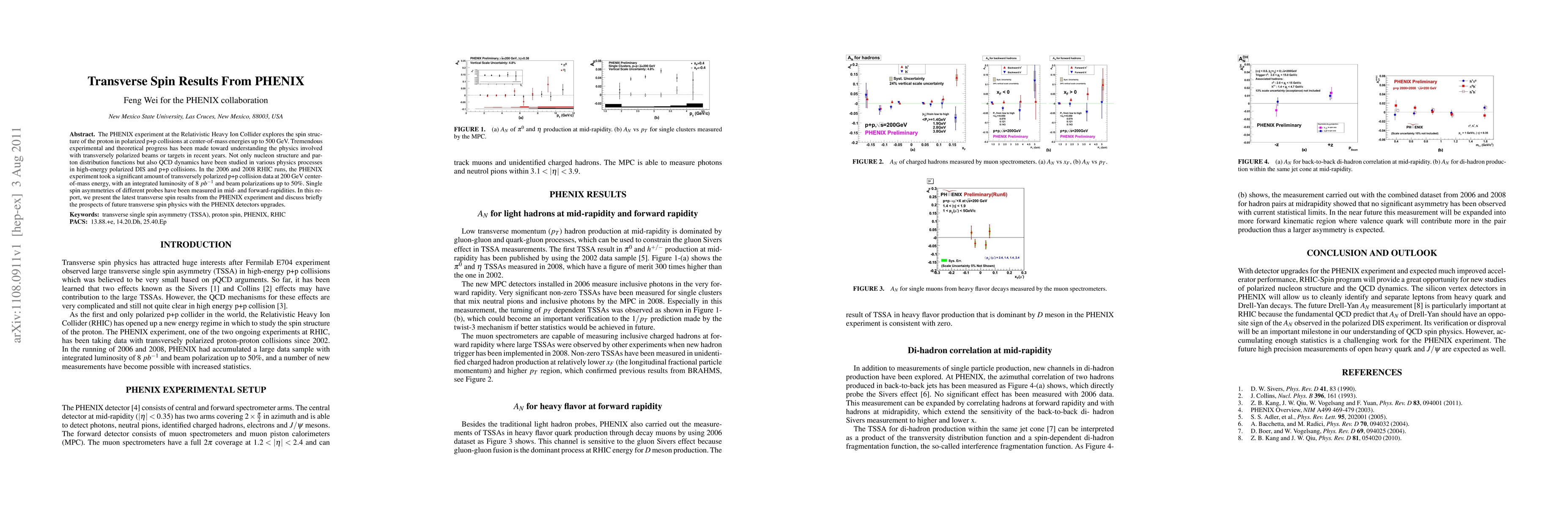 PHENIX experiment's extensive measurements of transverse spin asymmetries in various probes, providing new data points for understanding the spin structure of the proton.
