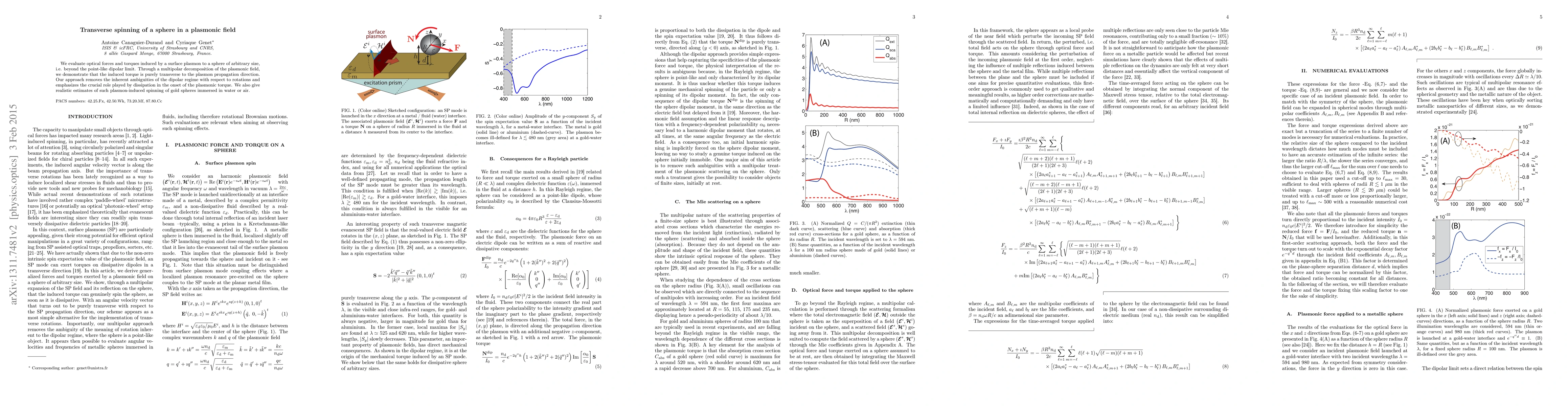 Researchers demonstrate that plasmonic forces on a sphere can induce purely transverse torque, with dissipation playing a crucial role in its onset, allowing for realistic estimates of plasmon-induced spinning of gold spheres.