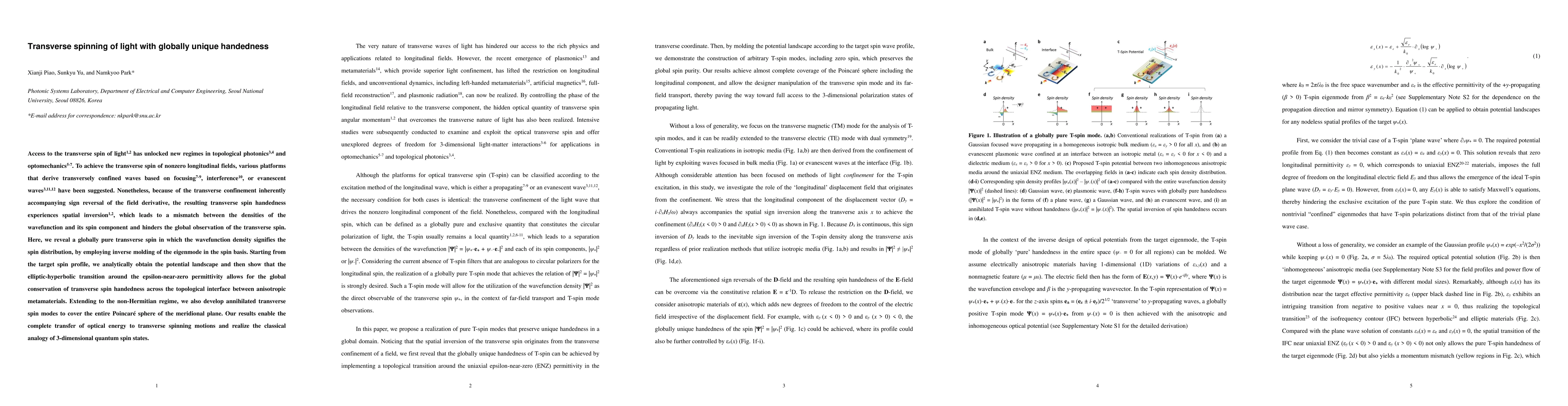 Researchers achieved a globally pure transverse spin in light, allowing for the global observation of its handedness, and demonstrated this phenomenon in anisotropic metamaterials and non-Hermitian regimes.