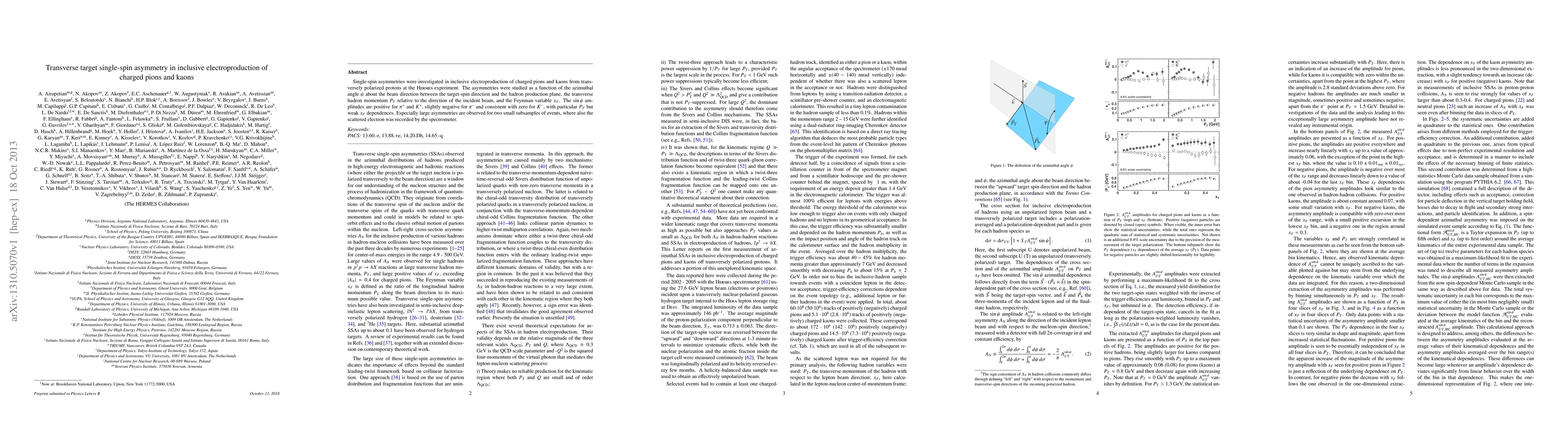 This study investigates single-spin asymmetries in the electroproduction of charged pions and kaons from transversely polarized protons at the HERMES experiment, revealing positive $\sin(\psi)$ amplitudes for positive pions and kaons, and negligible asymmetries for negative kaons. Significant asymmetries are noted in specific subsamples where the scattered electron was detected.