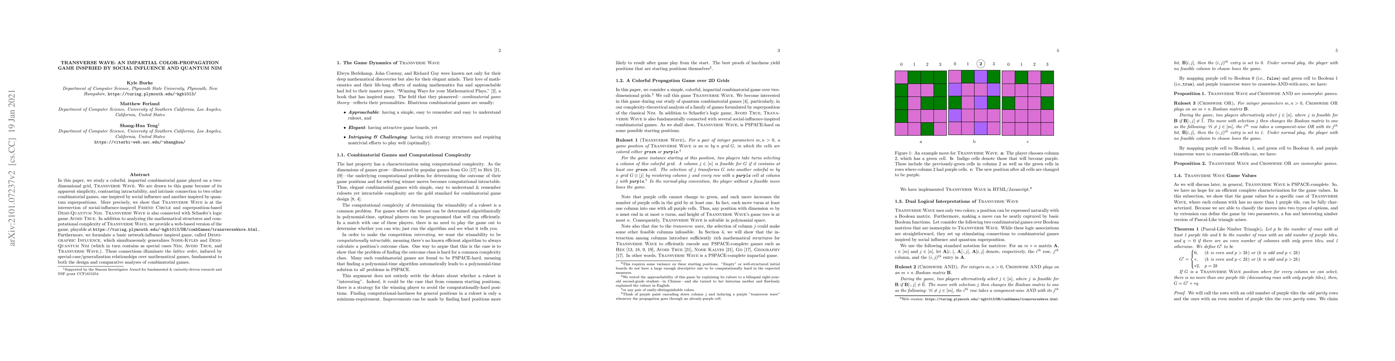 This paper explores the Transverse Wave game, a simple yet complex combinatorial game on a grid, which connects to social influence and quantum superpositions through games like Friend Circle and Demi-Quantum Nim. The study also introduces a web-based version and a related game, Demographic Influence, highlighting the lattice order of mathematical games.