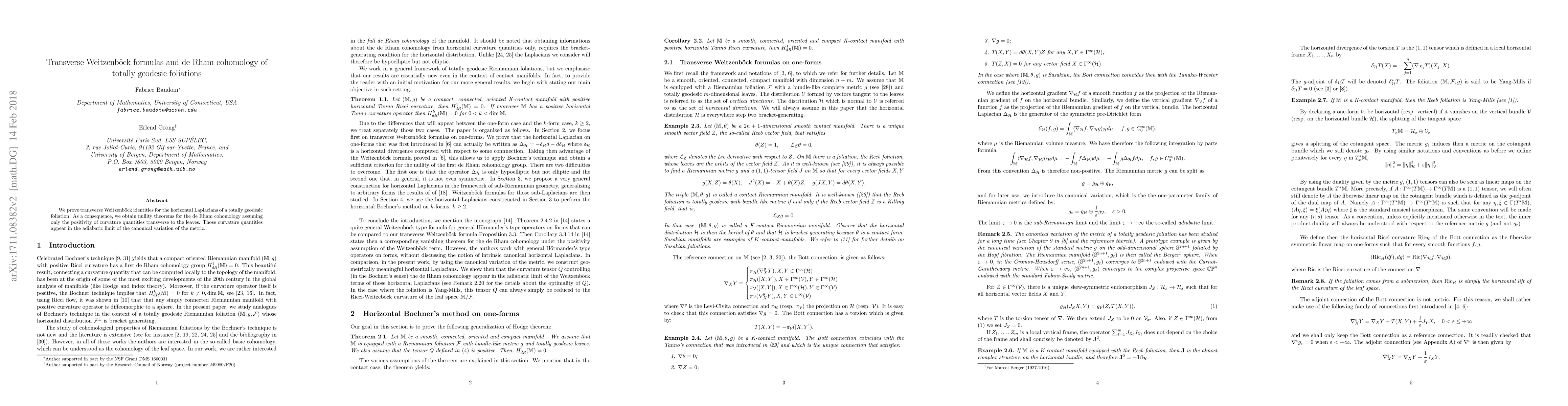 Summary: This paper proves transverse Weitzenböck identities for horizontal Laplacians in totally geodesic foliations, leading to nullity theorems for de Rham cohomology based on curvature positivity transverse to the leaves, relevant in the context of metric variation limits.