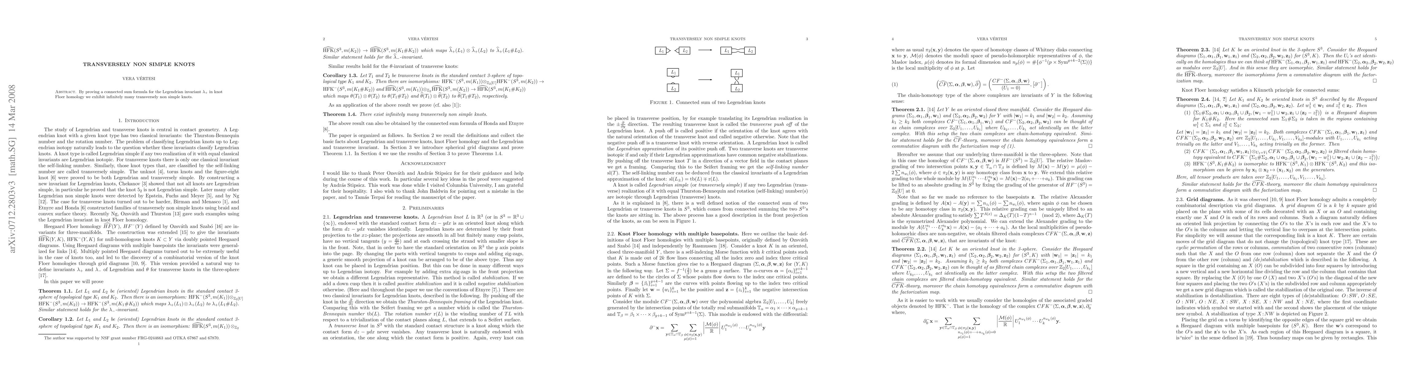 This paper proves a connected sum formula for the Legendrian invariant $\lambda_+$ in knot Floer homology, demonstrating the existence of infinitely many transversely non simple knots.