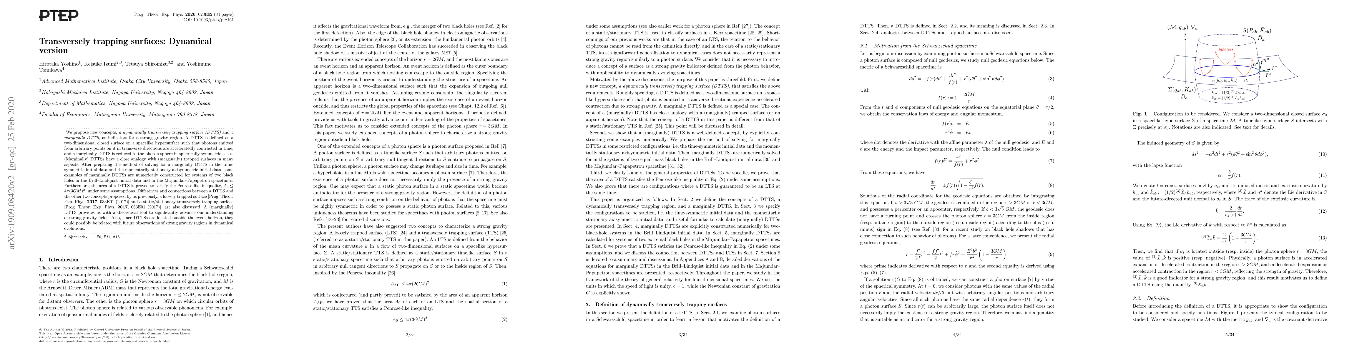 We propose new concepts, a dynamically transversely trapping surface (DTTS) and a marginally DTTS, as indicators for a strong gravity region. A DTTS is defined as a two-dimensional closed surface on a spacelike hypersurface such that photons emitted from arbitrary points on it in transverse directions are acceleratedly contracted in time, and a marginally DTTS is reduced to the photon sphere in spherically symmetric cases. (Marginally) DTTSs have a close analogy with (marginally) trapped surfaces in many aspects. After preparing the method of solving for a marginally DTTS in the time-symmetric initial data and the momentarily stationary axisymmetric initial data, some examples of marginally DTTSs are numerically constructed for systems of two black holes in the Brill-Lindquist initial data and in the Majumdar-Papapetrou spacetimes. Furthermore, the area of a DTTS is proved to satisfy the Penrose-like inequality, $A_0\le 4\pi (3GM)^2$, under some assumptions. Differences and connections between a DTTS and the other two concepts proposed by us previously, a loosely trapped surface [arXiv:1701.00564] and a static/stationary transversely trapping surface [arXiv:1704.04637], are also discussed. A (marginally) DTTS provides us with a theoretical tool to significantly advance our understanding of strong gravity fields. Also, since DTTSs are located outside the event horizon, they could possibly be related with future observations of strong gravity regions in dynamical evolutions.