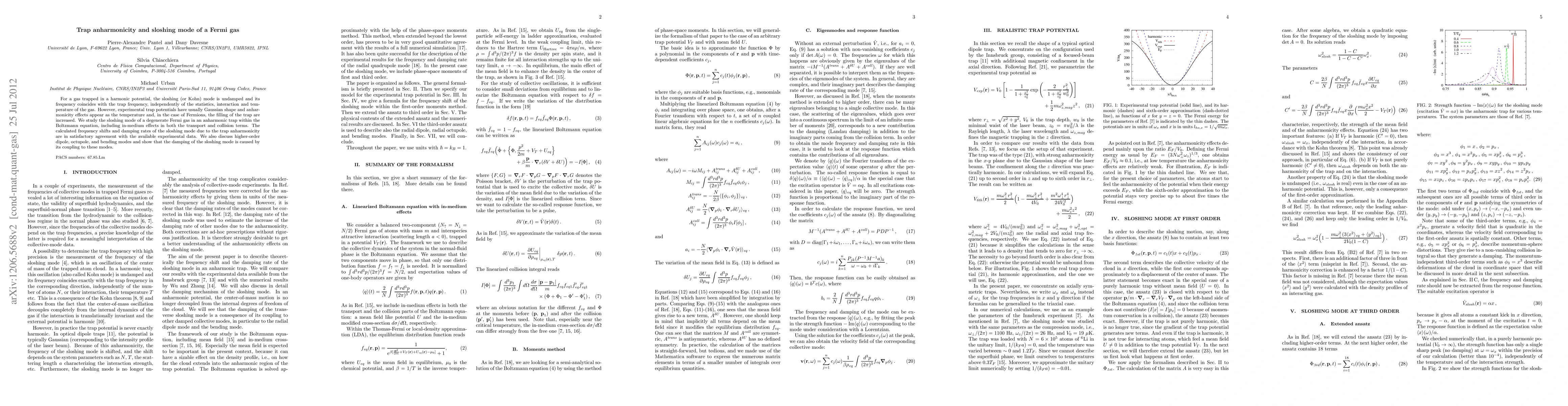 This paper investigates the sloshing mode of a degenerate Fermi gas in an anharmonic trap, finding frequency shifts and damping rates due to trap anharmonicity that align well with experimental data. It also explores the coupling of the sloshing mode to higher-order dipole, octupole, and bending modes, attributing the damping to this coupling.
