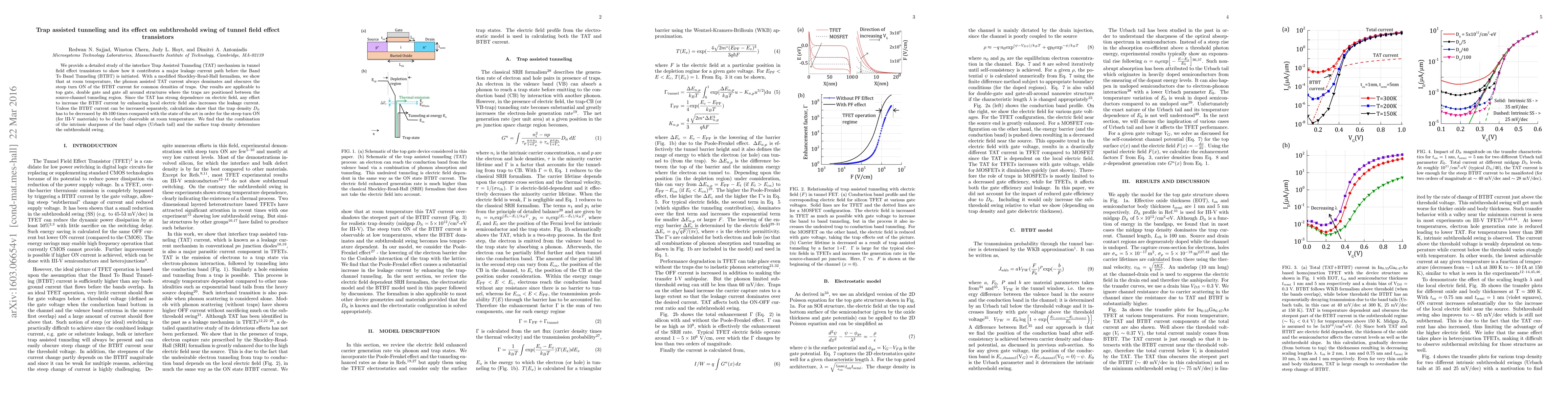 This paper investigates Trap Assisted Tunneling (TAT) in tunnel field effect transistors, demonstrating that it dominates leakage current at room temperature, overshadowing Band To Band Tunneling (BTBT). To achieve a steep turn ON, trap density must be significantly reduced by 40-100 times, highlighting the interplay between TAT and BTBT in determining the subthreshold swing.