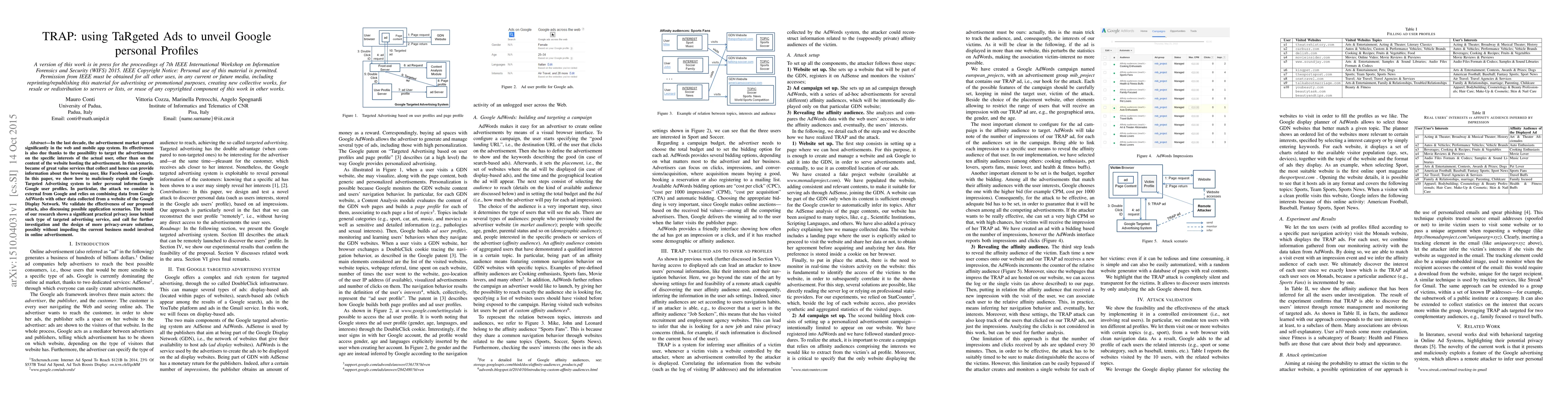 In the last decade, the advertisement market spread significantly in the web and mobile app system. Its effectiveness is also due thanks to the possibility to target the advertisement on the specific interests of the actual user, other than on the content of the website hosting the advertisement. In this scenario, became of great value services that collect and hence can provide information about the browsing user, like Facebook and Google. In this paper, we show how to maliciously exploit the Google Targeted Advertising system to infer personal information in Google user profiles. In particular, the attack we consider is external from Google and relies on combining data from Google AdWords with other data collected from a website of the Google Display Network. We validate the effectiveness of our proposed attack, also discussing possible application scenarios. The result of our research shows a significant practical privacy issue behind such type of targeted advertising service, and call for further investigation and the design of more privacy-aware solutions, possibly without impeding the current business model involved in online advertisement.