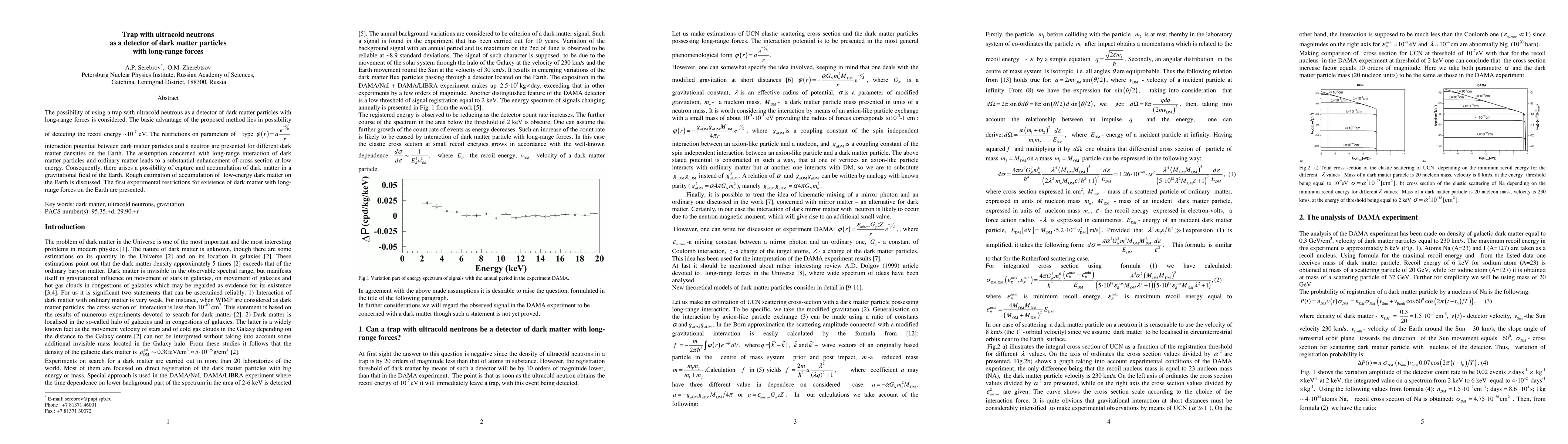 This paper explores the potential of using a trap with ultracold neutrons to detect dark matter particles with long-range forces, highlighting the method's ability to detect recoil energies as low as 10^-7 eV. The study presents constraints on the interaction parameters between dark matter and neutrons, discusses the accumulation of dark matter in Earth's gravitational field, and provides initial experimental limits on dark matter with long-range forces.