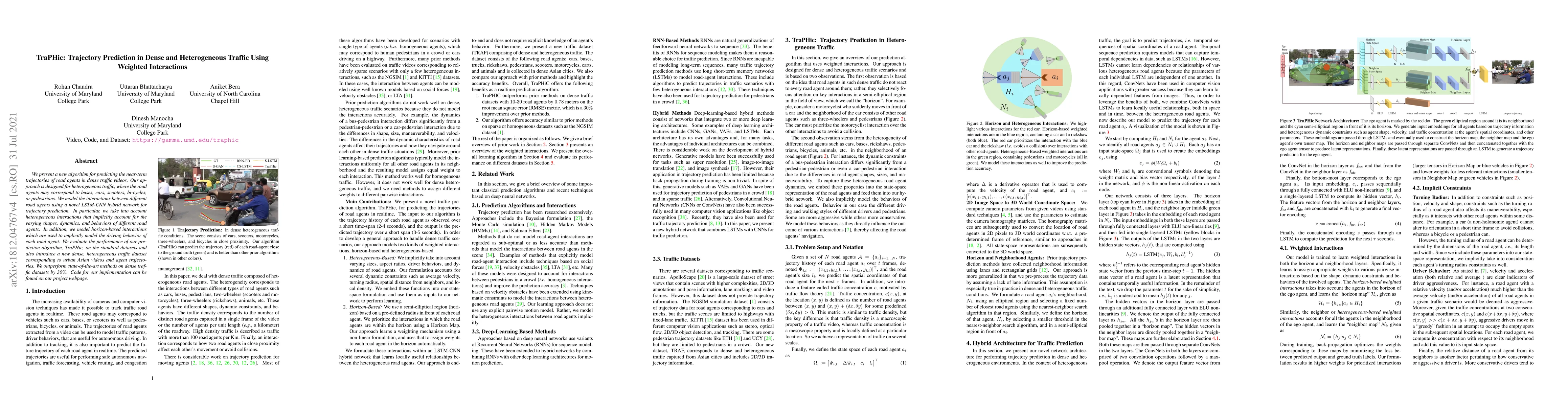 TraPHic is a novel algorithm that predicts the near-term trajectories of diverse road-agents in dense traffic using a hybrid LSTM-CNN network that models weighted interactions. It outperforms existing methods by 30% on standard datasets and introduces a new urban Asian traffic dataset.