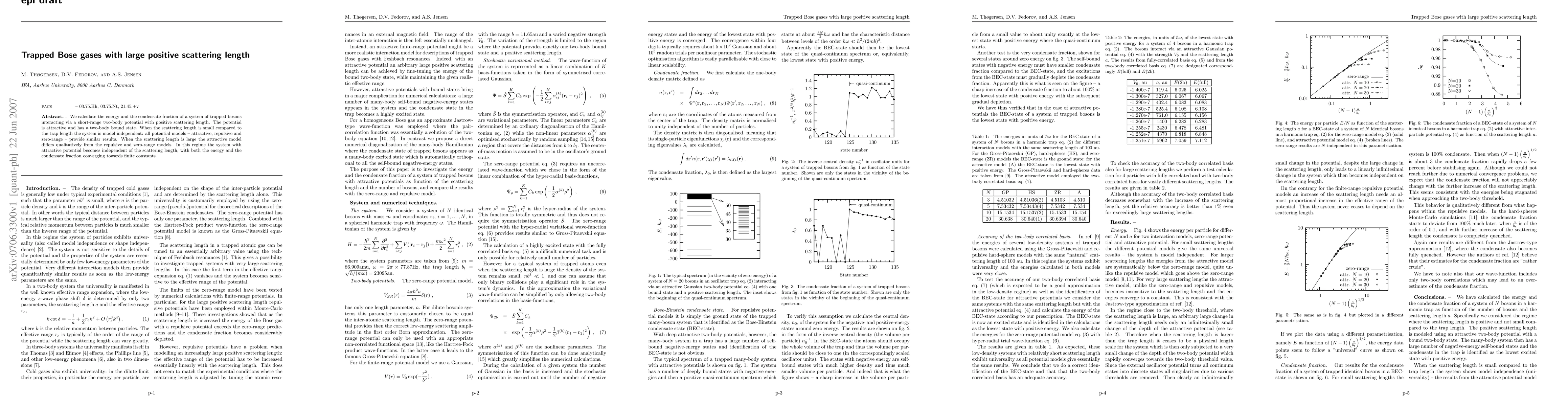 We calculate the energy and the condensate fraction of a system of trapped bosons interacting via a short-range two-body potential with positive scattering length. The potential is attractive and has a two-body bound state. When the scattering length is small compared to the trap length the system is model independent: all potential models -- attractive, repulsive and zero-range -- provide similar results. When the scattering length is large the attractive model differs qualitatively from the repulsive and zero-range models. In this regime the system with attractive potential becomes independent of the scattering length, with both the energy and the condensate fraction converging towards finite constants.