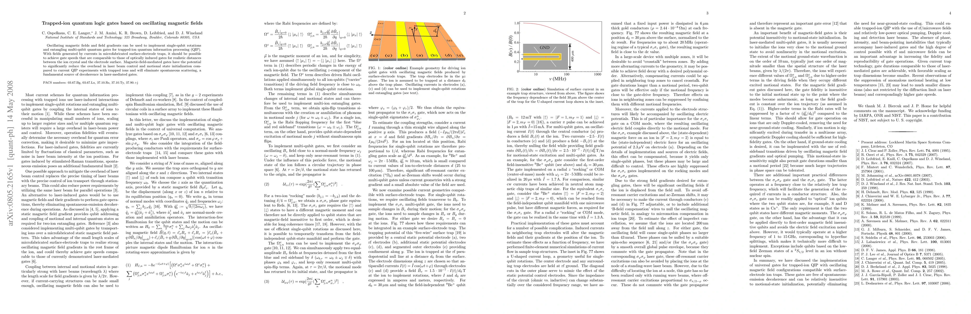 This paper explores the implementation of trapped-ion quantum logic gates using oscillating magnetic fields, which could achieve comparable gate speeds to optically induced gates and reduce the overhead in laser control, ultimately mitigating decoherence issues prevalent in laser-mediated systems.