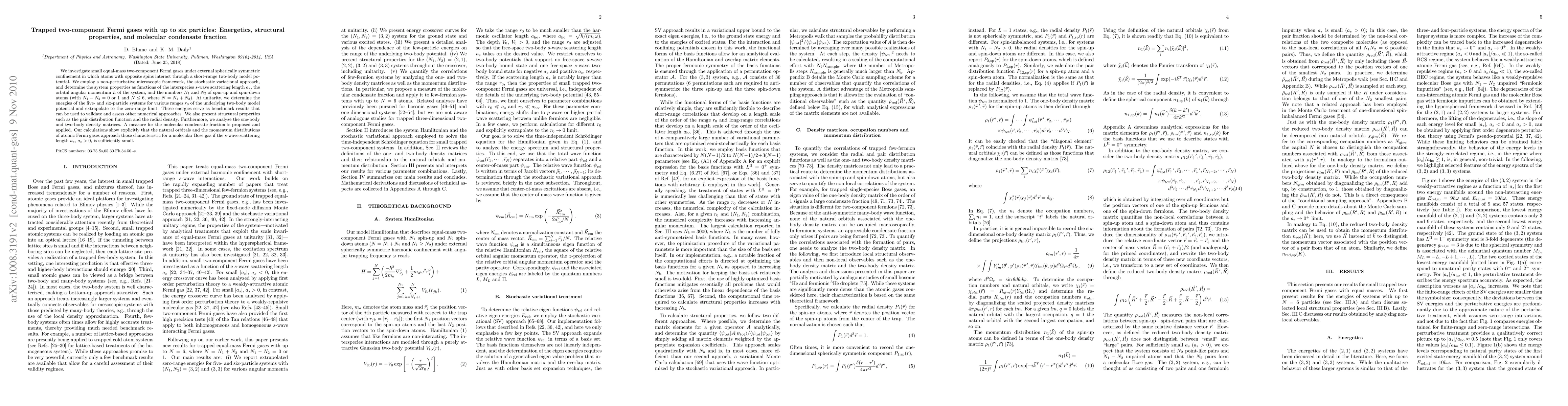 We investigate small equal-mass two-component Fermi gases under external spherically symmetric confinement in which atoms with opposite spins interact through a short-range two-body model potential. We employ a non-perturbative microscopic framework, the stochastic variational approach, and determine the system properties as functions of the interspecies s-wave scattering length a, the orbital angular momentum L of the system, and the numbers N1 and N2 of spin-up and spin-down atoms (with N1-N2 =0 or 1 and N < 7, where N=N1+N2). At unitarity, we determine the energies of the five- and six-particle systems for various ranges r0 of the underlying two-body model potential and extrapolate to the zero-range limit. These energies serve as benchmark results that can be used to validate and assess other numerical approaches. We also present structural properties such as the pair distribution function and the radial density. Furthermore, we analyze the one-body and two-body density matrices. A measure for the molecular condensate fraction is proposed and applied. Our calculations show explicitly that the natural orbitals and the momentum distributions of atomic Fermi gases approach those characteristic for a molecular Bose gas if the s-wave scattering length a, a>0, is sufficiently small.