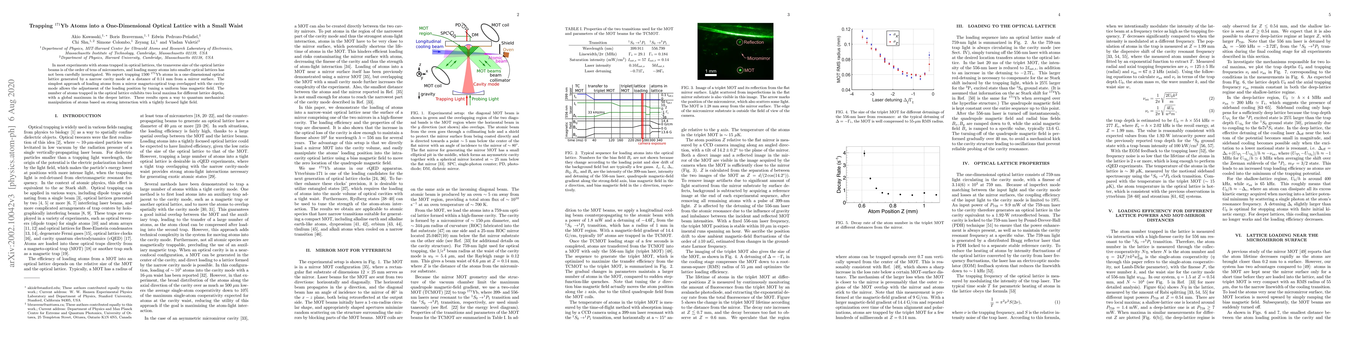 This paper reports the successful trapping of 1500 $^{171}$Yb atoms in a one-dimensional optical lattice with a small waist, demonstrating the potential for quantum mechanical manipulation of atoms using tightly focused light fields. The study highlights the ability to adjust atom loading position via a uniform bias magnetic field.
