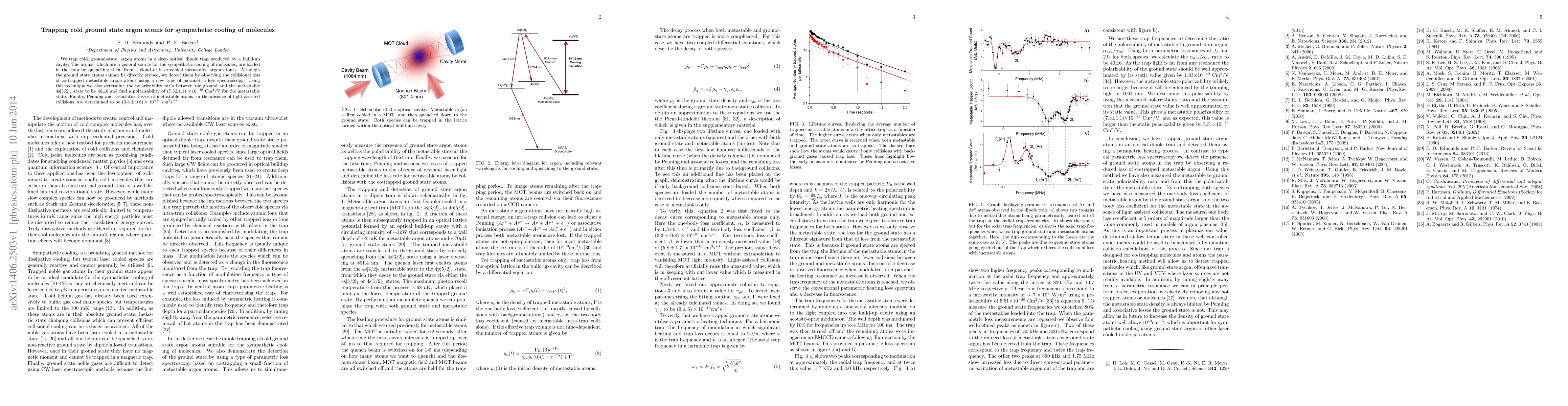 Researchers trap cold ground-state argon atoms in an optical dipole trap for the purpose of sympathetically cooling molecules. They utilize a new parametric loss spectroscopy technique to detect these atoms indirectly by observing the collisional loss of co-trapped metastable argon atoms.