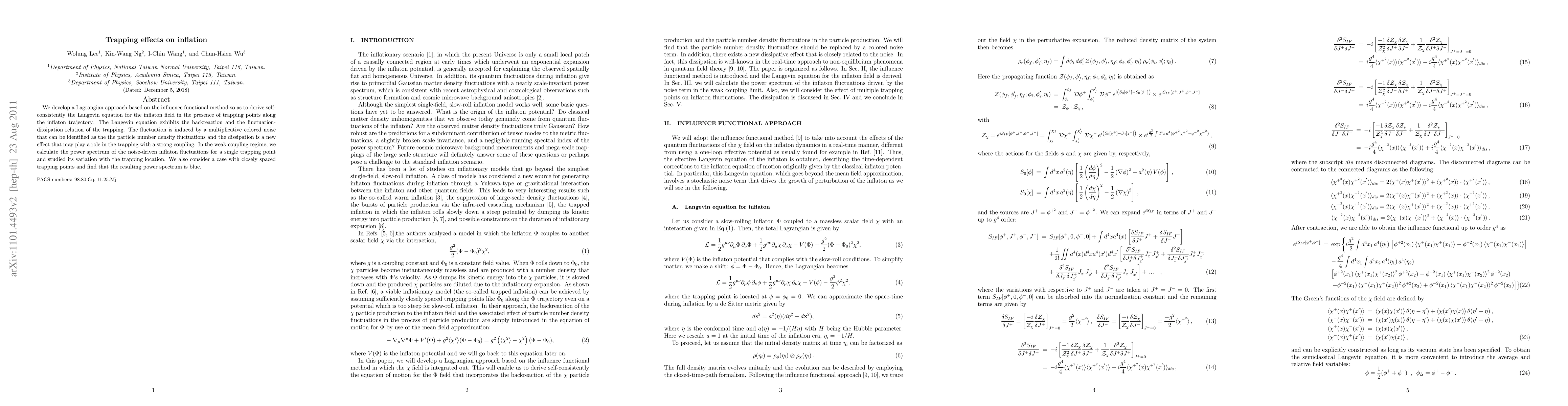 We develop a Lagrangian approach based on the influence functional method so as to derive self-consistently the Langevin equation for the inflaton field in the presence of trapping points along the inflaton trajectory. The Langevin equation exhibits the backreaction and the fluctuation-dissipation relation of the trapping. The fluctuation is induced by a multiplicative colored noise that can be identified as the the particle number density fluctuations and the dissipation is a new effect that may play a role in the trapping with a strong coupling. In the weak coupling regime, we calculate the power spectrum of the noise-driven inflaton fluctuations for a single trapping point and studied its variation with the trapping location. We also consider a case with closely spaced trapping points and find that the resulting power spectrum is blue.