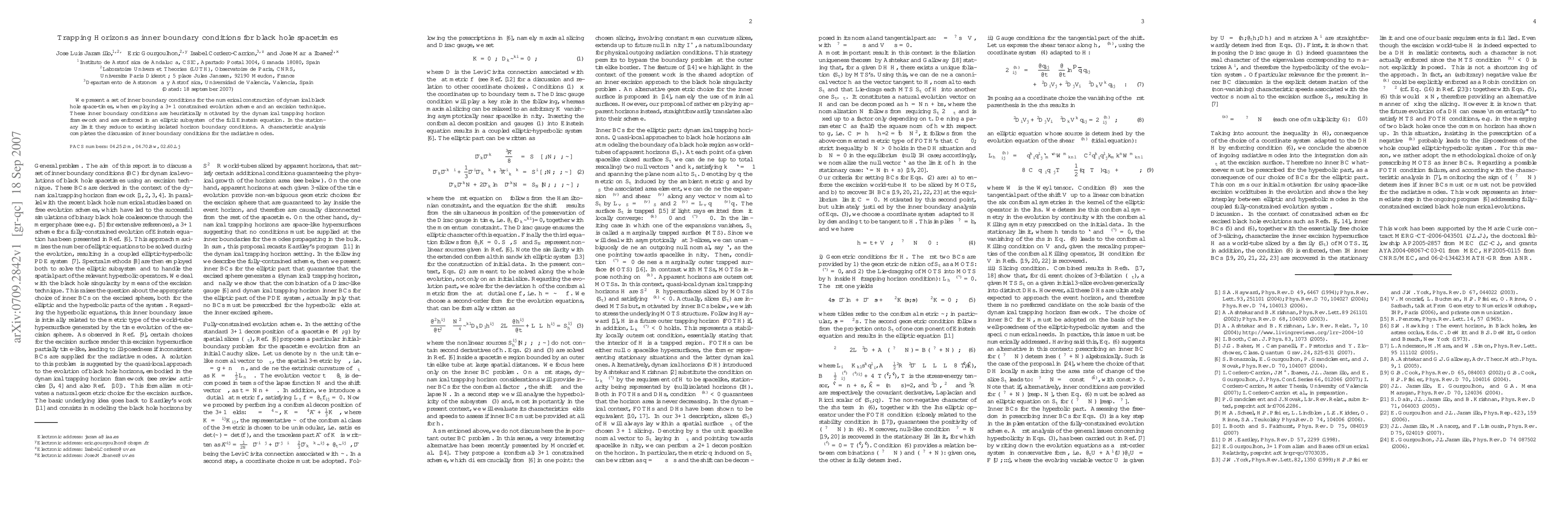 This paper proposes inner boundary conditions for numerically modeling dynamical black hole spacetimes using a 3+1 evolution scheme and excision techniques, inspired by the trapping horizon framework. These conditions are enforced in an elliptic subsystem of the Einstein equations and reduce to isolated horizon conditions in the stationary limit.