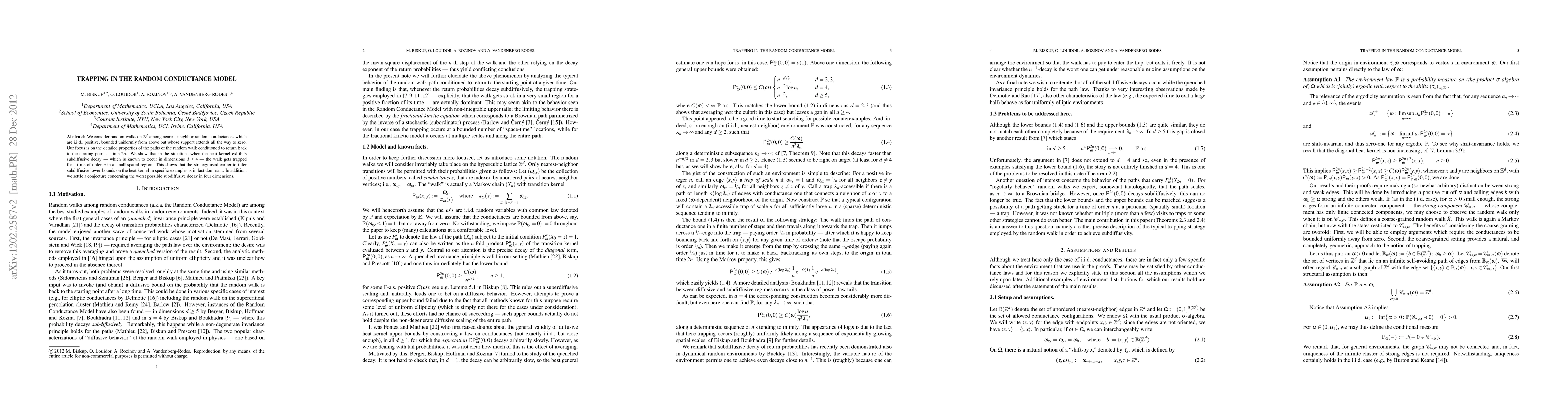We consider random walks on $\Z^d$ among nearest-neighbor random conductances which are i.i.d., positive, bounded uniformly from above but whose support extends all the way to zero. Our focus is on the detailed properties of the paths of the random walk conditioned to return back to the starting point at time $2n$. We show that in the situations when the heat kernel exhibits subdiffusive decay --- which is known to occur in dimensions $d\ge4$ --- the walk gets trapped for a time of order $n$ in a small spatial region. This shows that the strategy used earlier to infer subdiffusive lower bounds on the heat kernel in specific examples is in fact dominant. In addition, we settle a conjecture concerning the worst possible subdiffusive decay in four dimensions.