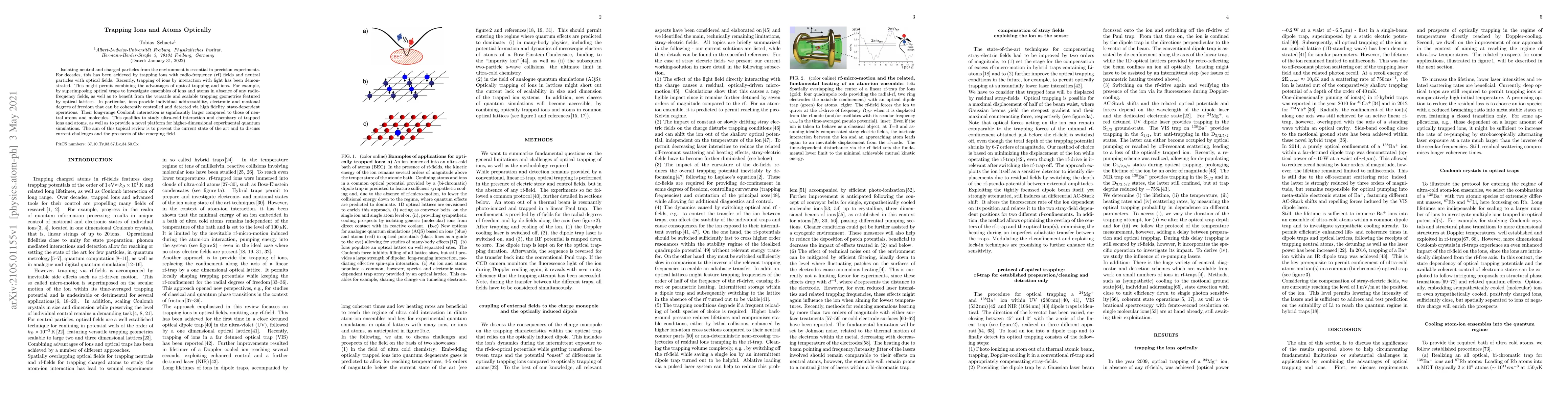 This paper reviews the advancements in optically trapping ions and atoms, highlighting the potential to combine optical trapping benefits with ion precision, and discusses the emerging field's challenges and future prospects for quantum simulations and ultra-cold chemistry.