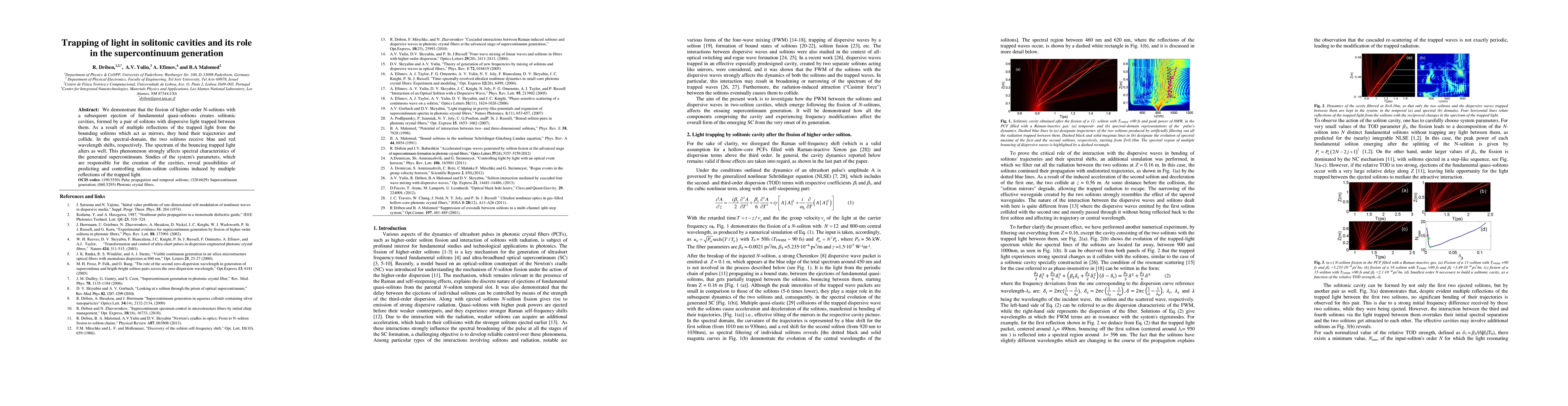 We demonstrate that the fission of higher-order N-solitons with a subsequent ejection of fundamental quasi-solitons creates solitonic cavities, formed by a pair of solitons with dispersive light trapped between them. As a result of multiple reflections of the trapped light from the bounding solitons which act as mirrors, they bend their trajectories and collide. In the spectral-domain, the two solitons receive blue and red wavelength shifts, respectively. The spectrum of the bouncing trapped light alters as well. This phenomenon strongly affect spectral characteristics of the generated supercontinuum. Studies of the system's parameters, which are responsible for the creation of the cavities, reveal possibilities of predicting and controlling soliton-soliton collisions induced by multiple reflections of the trapped light.