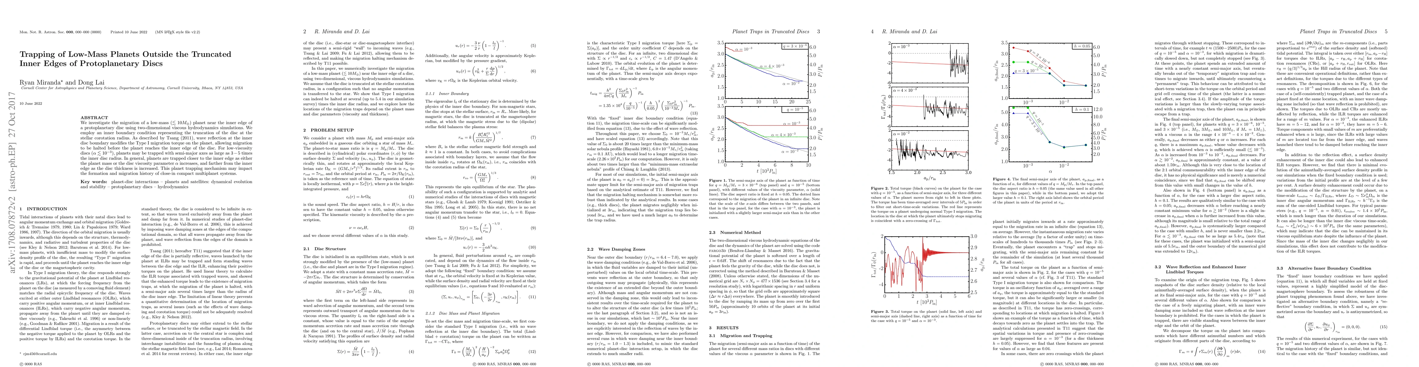 This study uses viscous hydrodynamics simulations to explore the migration of low-mass planets near the inner edge of truncated protoplanetary discs, showing that wave reflection can halt Type I migration, potentially trapping planets at semi-major axes up to 3-5 times the inner disc radius, with trapping location dependent on planet mass, disc viscosity, and disc thickness.