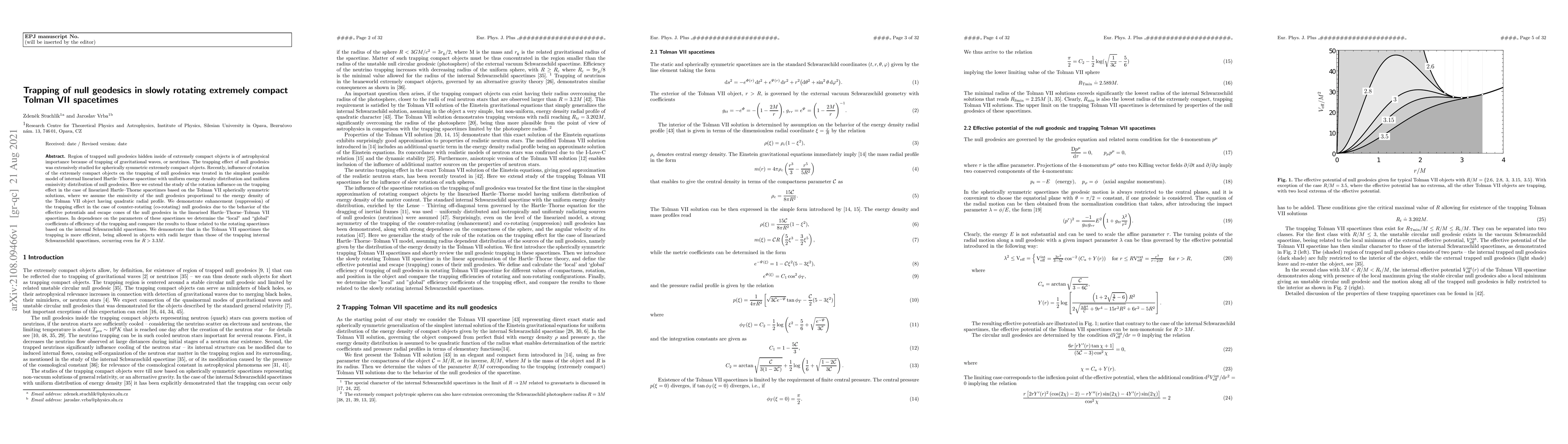 This paper investigates the influence of rotation on the trapping of null geodesics within extremely compact Tolman VII objects, demonstrating enhanced trapping efficiency for counter-rotating geodesics and comparing these results to rotating Schwarzschild spacetimes, showing that Tolman VII spacetimes allow trapping in larger objects.