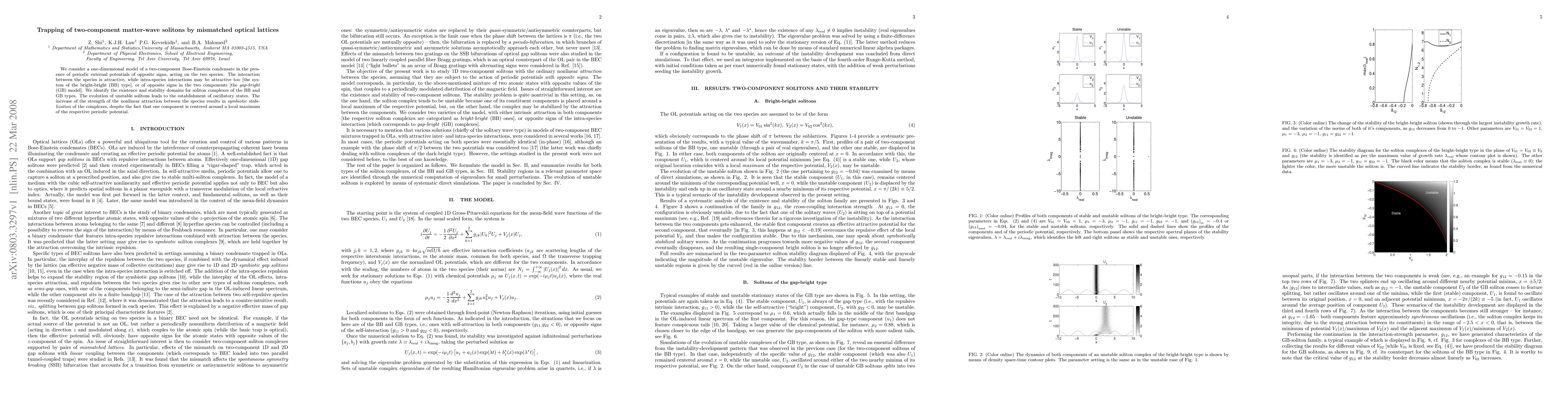 Researchers studied how two-component Bose-Einstein condensates interact with periodic potentials, finding that stronger nonlinear attraction can stabilize soliton complexes despite being trapped in local maxima.