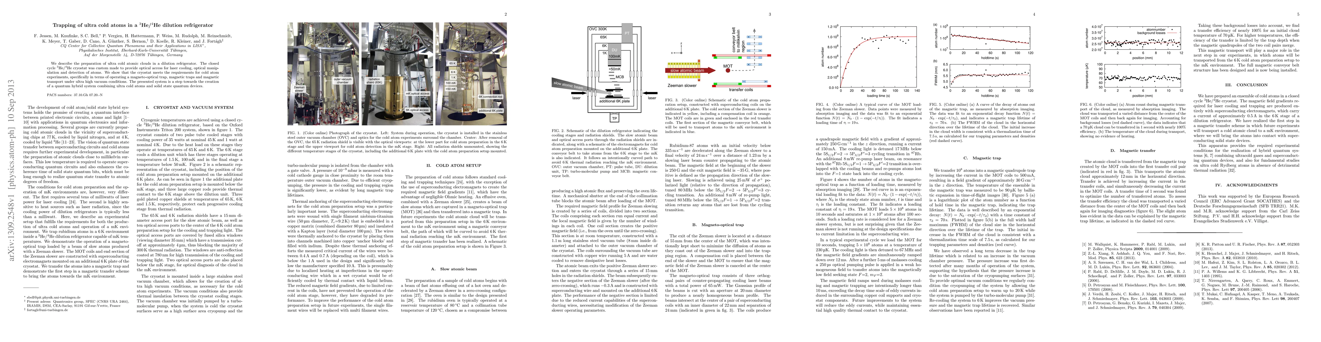 This paper details the development of a custom 3He/4He dilution refrigerator for trapping ultra cold atomic clouds, emphasizing its suitability for optical access and high vacuum conditions necessary for magneto-optical and magnetic traps, paving the way for quantum hybrid systems.