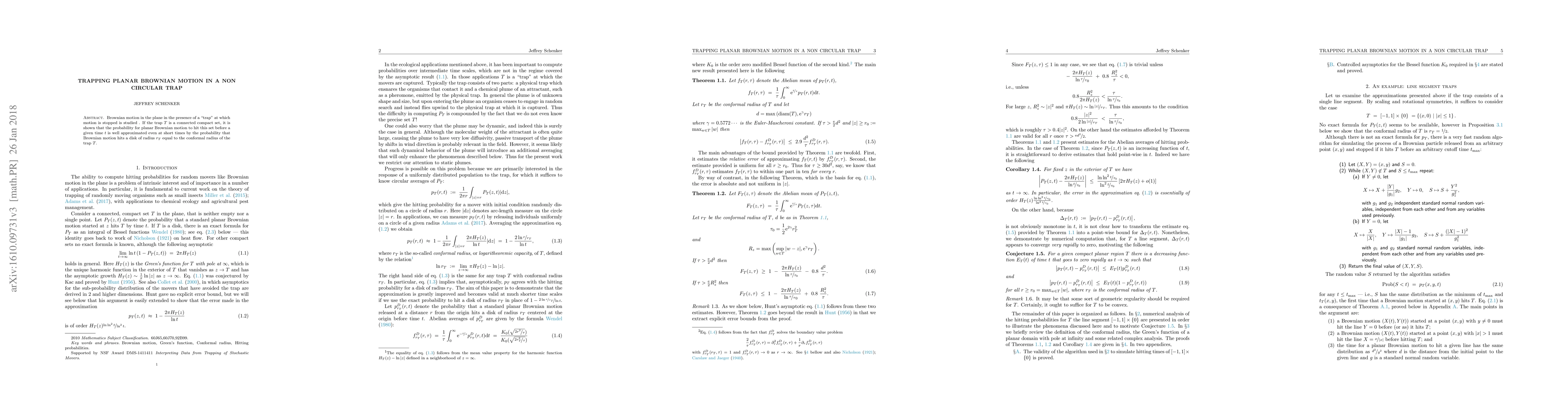 This paper investigates the behavior of planar Brownian motion in the presence of a non-circular trap, demonstrating that the probability of hitting the trap can be approximated by that of hitting a disk of radius equal to the conformal radius of the trap, even at short times.