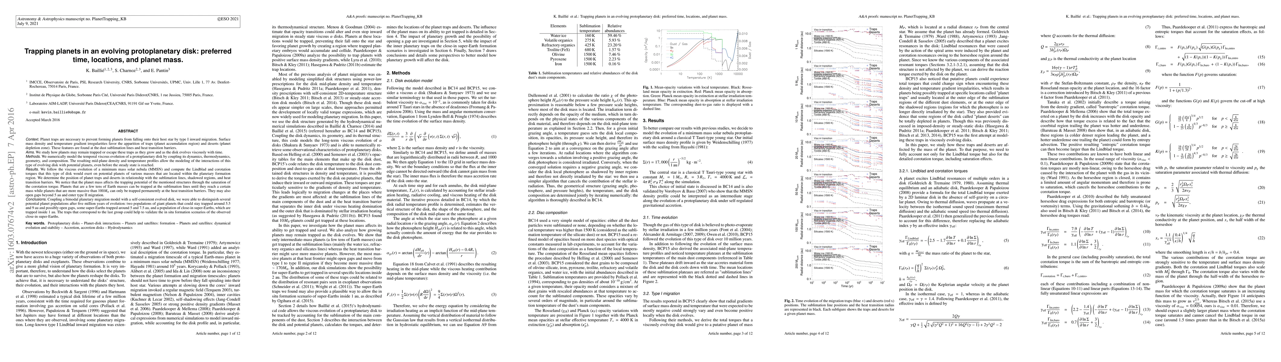 This research investigates how planets can become trapped in evolving protoplanetary disks, identifying preferred locations and times for trapping based on disk dynamics and thermodynamics. It finds that planets of a few tens of Earth masses can be trapped at sublimation lines, while more massive planets are permanently trapped at heat transition barriers, leading to distinct populations of giant and super-Earth planets in specific regions of the disk after 5 million years of evolution.