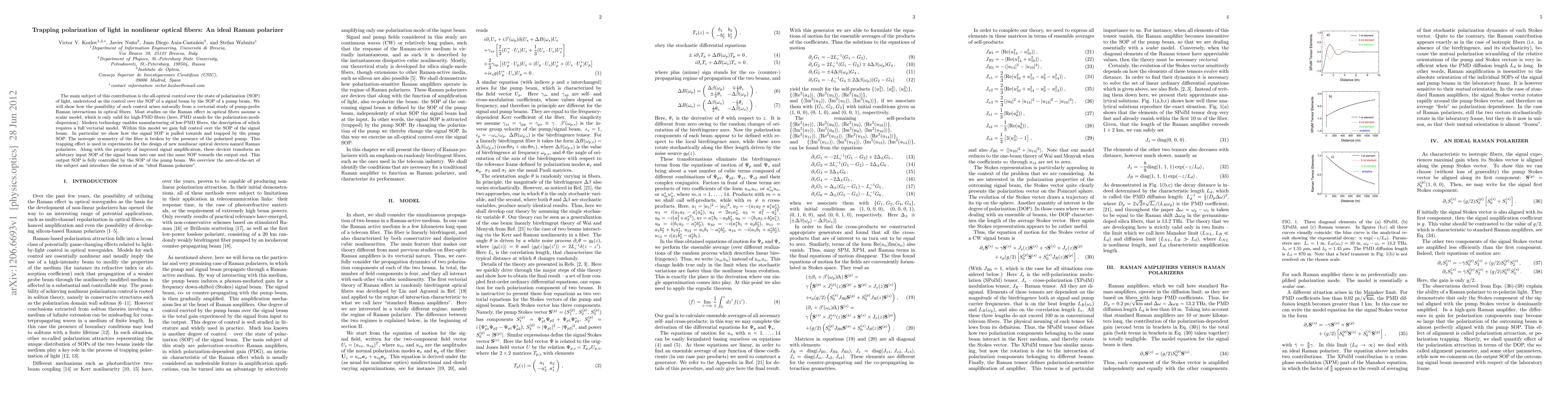 The main subject of this contribution is the all-optical control over the state of polarization (SOP) of light, understood as the control over the SOP of a signal beam by the SOP of a pump beam. We will show how the possibility of such control arises naturally from a vectorial study of pump-probe Raman interactions in optical fibers. Most studies on the Raman effect in optical fibers assume a scalar model, which is only valid for high-PMD fibers (here, PMD stands for the polarization-mode dispersion). Modern technology enables manufacturing of low-PMD fibers, the description of which requires a full vectorial model. Within this model we gain full control over the SOP of the signal beam. In particular we show how the signal SOP is pulled towards and trapped by the pump SOP. The isotropic symmetry of the fiber is broken by the presence of the polarized pump. This trapping effect is used in experiments for the design of new nonlinear optical devices named Raman polarizers. Along with the property of improved signal amplification, these devices transform an arbitrary input SOP of the signal beam into one and the same SOP towards the output end. This output SOP is fully controlled by the SOP of the pump beam. We overview the sate-of-the-art of the subject and introduce the notion of an "ideal Raman polarizer".