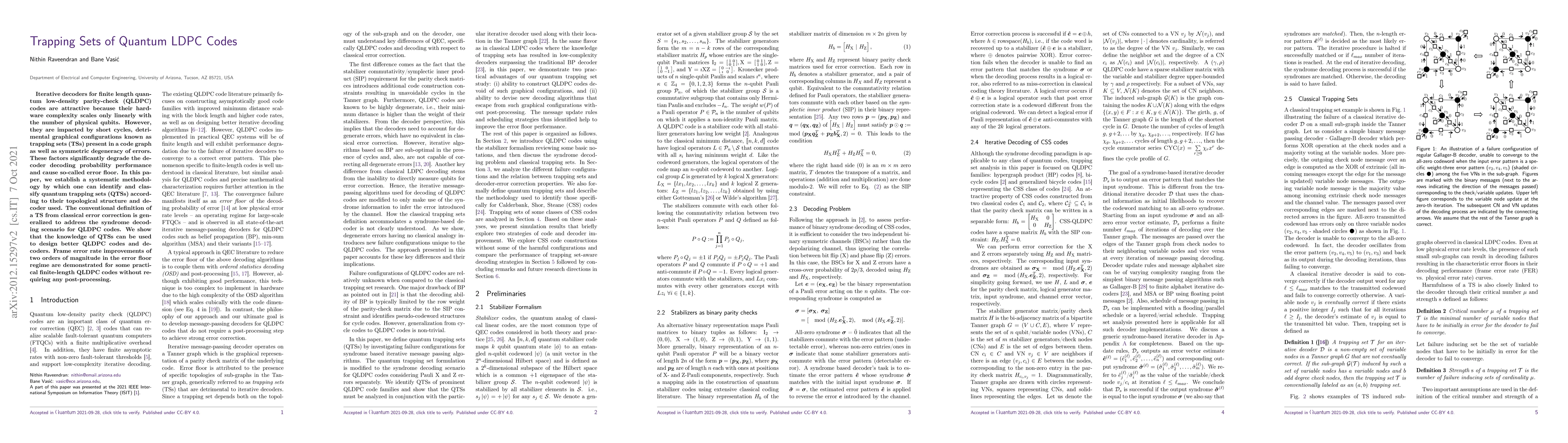 Iterative decoders for finite length quantum low-density parity-check (QLDPC) codes are attractive because their hardware complexity scales only linearly with the number of physical qubits. However, they are impacted by short cycles, detrimental graphical configurations known as trapping sets (TSs) present in a code graph as well as symmetric degeneracy of errors. These factors significantly degrade the decoder decoding probability performance and cause so-called error floor. In this paper, we establish a systematic methodology by which one can identify and classify quantum trapping sets (QTSs) according to their topological structure and decoder used. The conventional definition of a TS from classical error correction is generalized to address the syndrome decoding scenario for QLDPC codes. We show that the knowledge of QTSs can be used to design better QLDPC codes and decoders. Frame error rate improvements of two orders of magnitude in the error floor regime are demonstrated for some practical finite-length QLDPC codes without requiring any post-processing.
