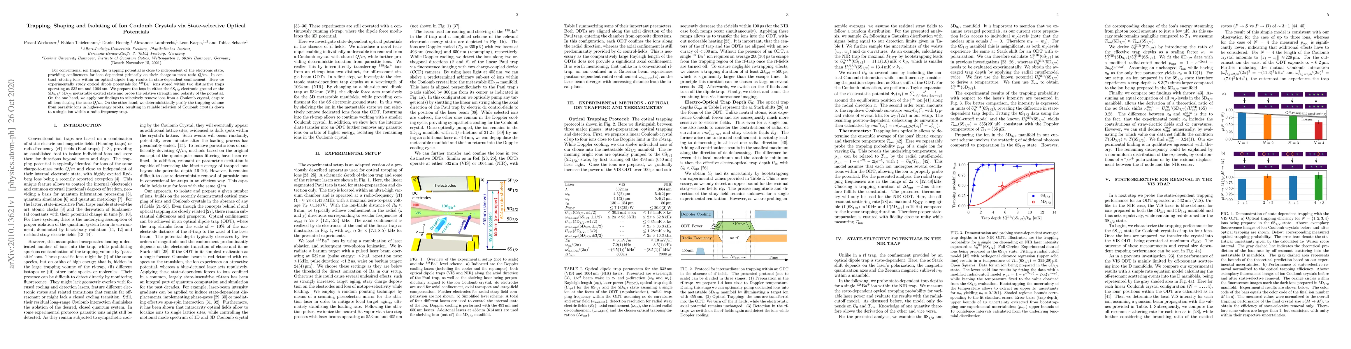 The research presents a novel method for trapping, shaping, and isolating ion Coulomb crystals using state-dependent optical potentials, enabling state-selective removal of ions despite sharing the same $Q/m$ ratio.