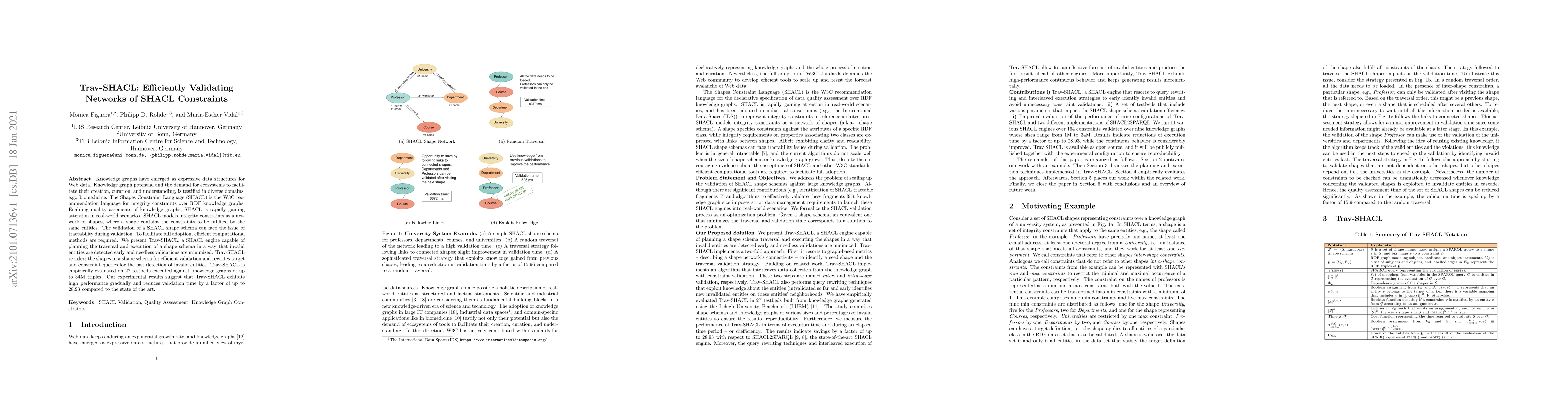 Trav-SHACL is a SHACL engine designed to efficiently validate networks of SHACL constraints in RDF knowledge graphs by reordering shapes and optimizing query execution, achieving up to 28.93 times faster validation compared to existing methods. The approach minimizes needless validations and detects invalid entities early.
