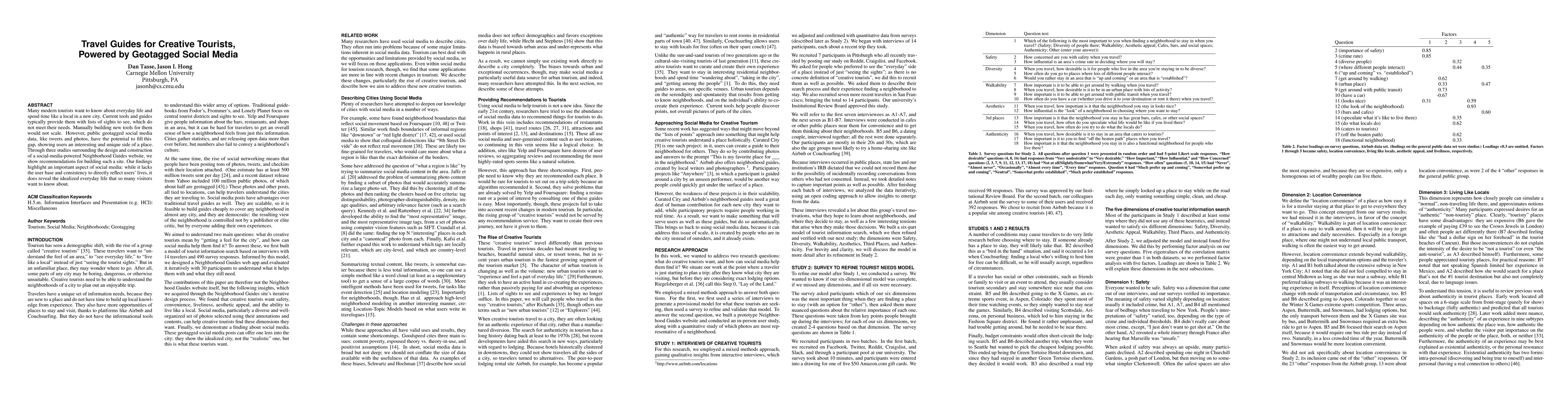 Many modern tourists want to know about everyday life and spend time like a local in a new city. Current tools and guides typically provide them with lists of sights to see, which do not meet their needs. Manually building new tools for them would not scale. However, public geotagged social media data, like tweets and photos, have the potential to fill this gap, showing users an interesting and unique side of a place. Through three studies surrounding the design and construction of a social-media-powered Neighborhood Guides website, we show recommendations for building such a site. Our findings highlight an important aspect of social media: while it lacks the user base and consistency to directly reflect users' lives, it does reveal the idealized everyday life that so many visitors want to know about.