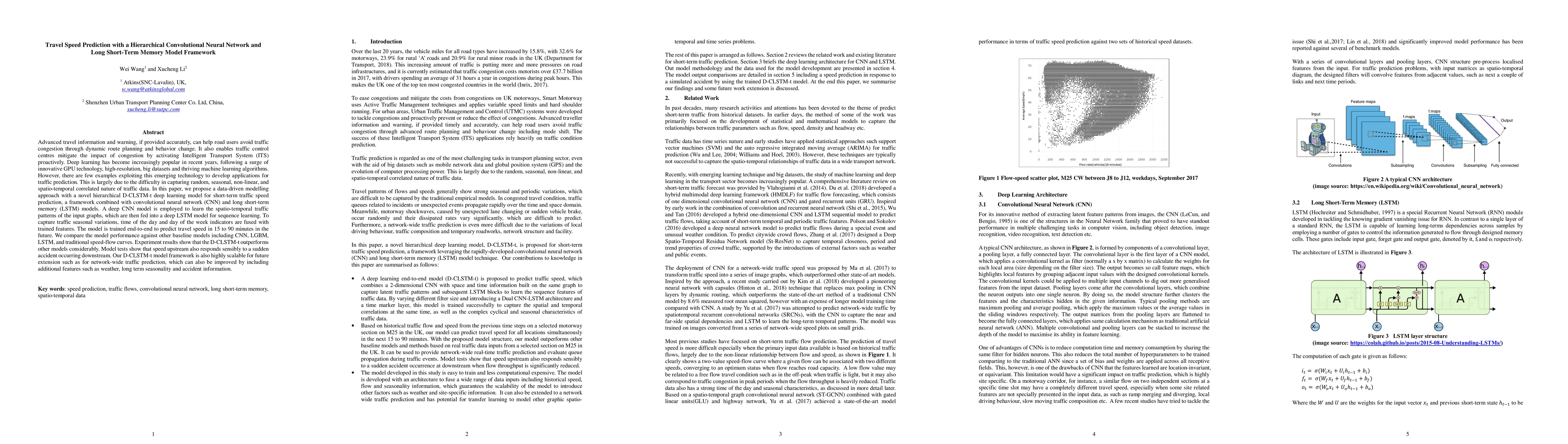 This paper proposes a hierarchical D-CLSTM-t deep learning model combining CNN and LSTM for short-term traffic speed prediction, showing superior performance over baseline models. The model is scalable and can be extended for network-wide traffic prediction by incorporating additional features.